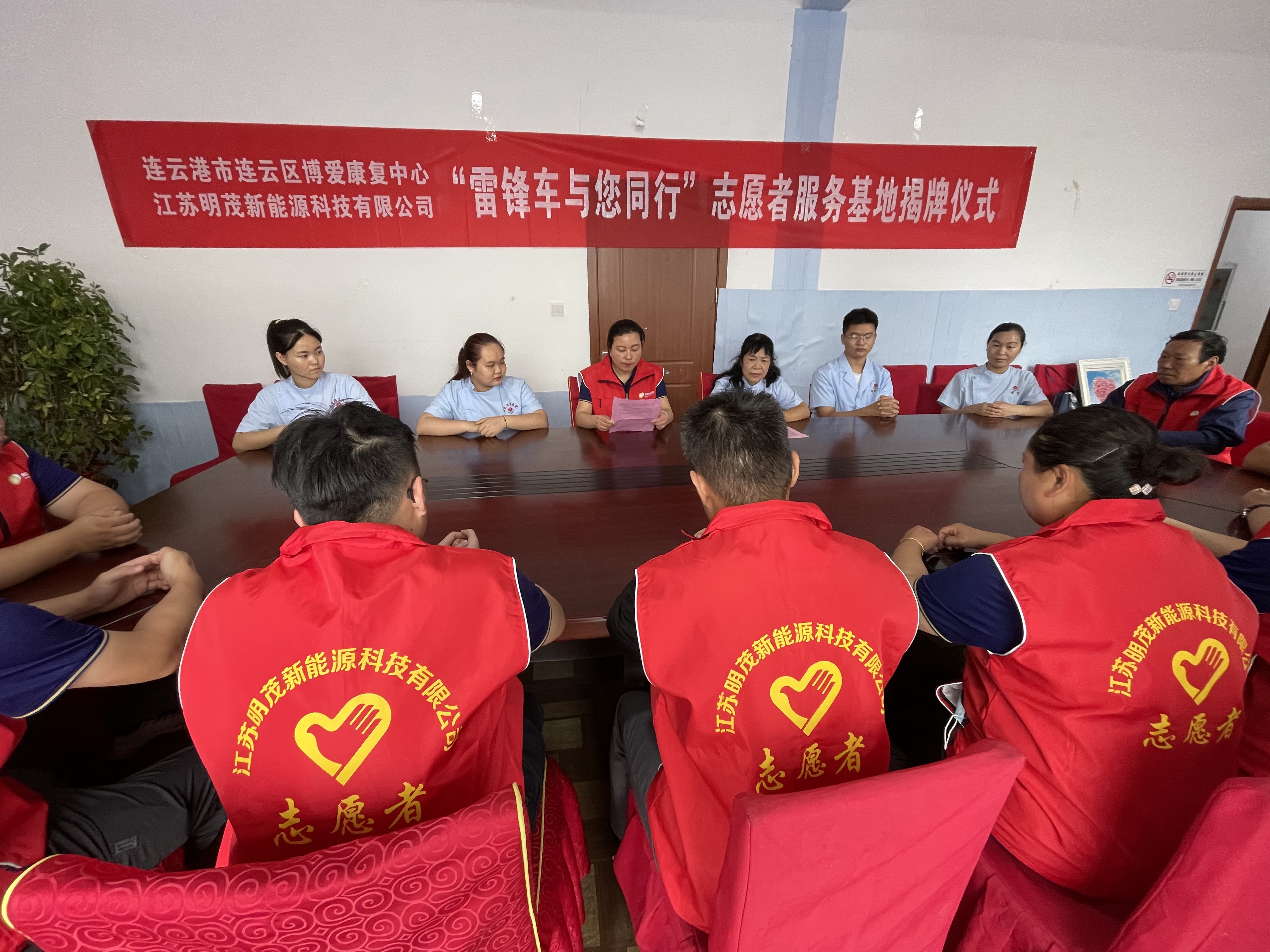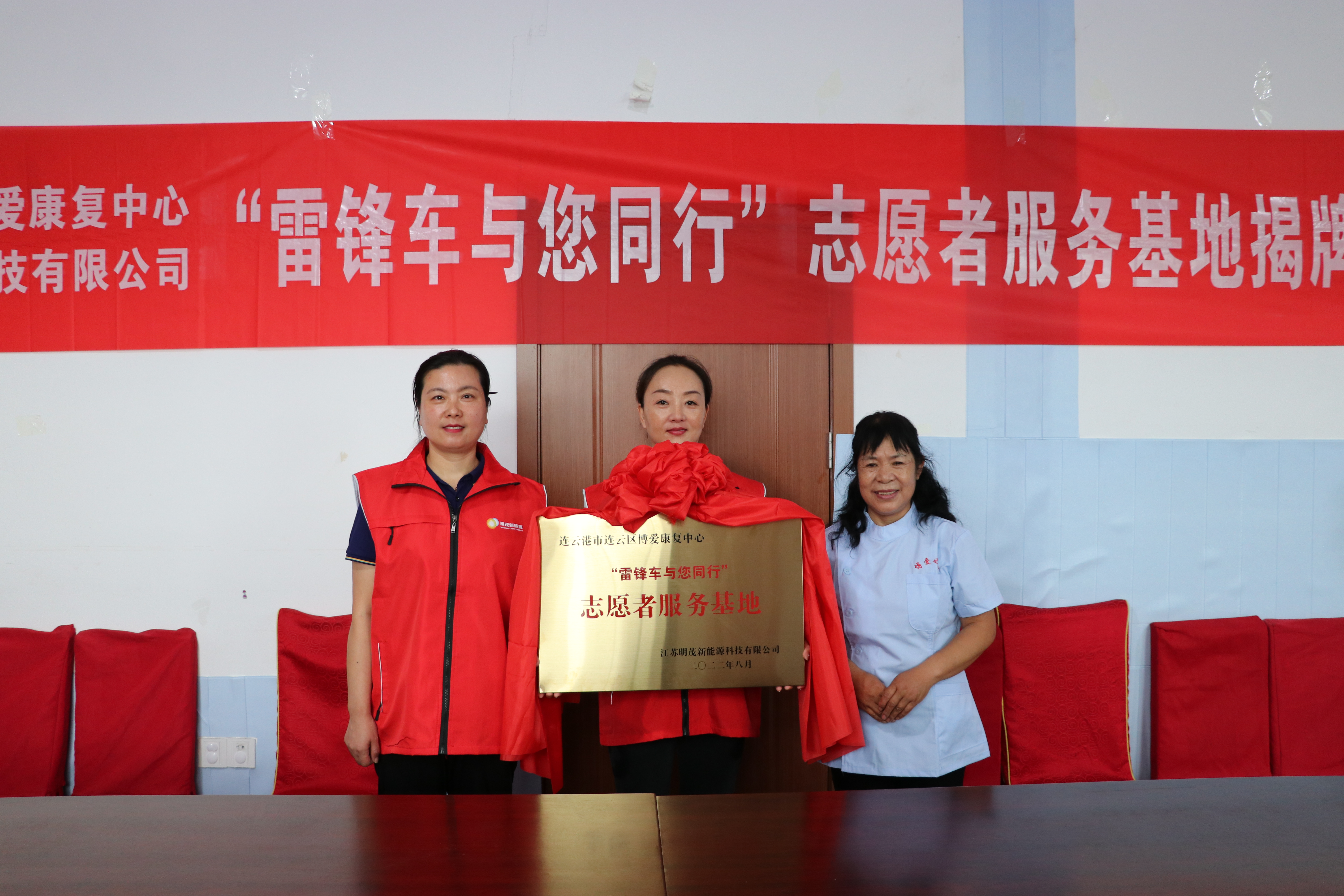 在揭牌活动中,该中心负责人将特殊小朋友亲手制作的“钻石红心树画”送给了来自明茂公司志愿者代表,感谢该公司志愿者近年来对他们的关心和帮助。“这次志愿服务基地的成立为双方建立长期合作奠定了基础,博爱康复中心与明茂公司将以“雷锋车与您同行”志愿服务基地为平台共同开展各项志愿服务活动,更好地深化新时代文明实践活动。”连云区博爱康复中心院长朱金霞说。