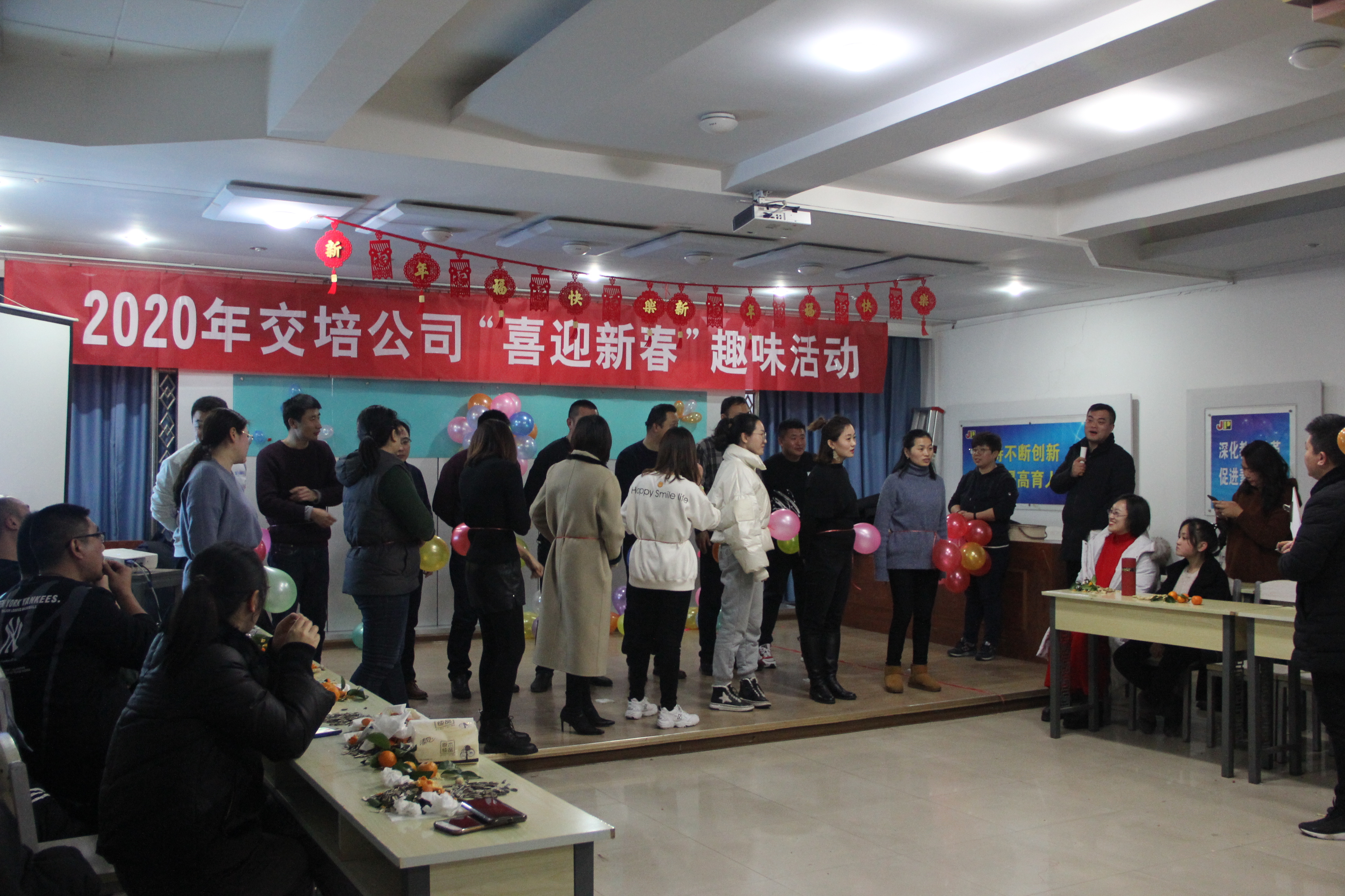 为迎新春佳节,活跃节日气氛,增强广大干部职工的凝聚力,展现企业文化,1月22日下午,交培公司在大庆西路5楼多功能教室,组织开展了“喜迎新春”趣味活动。公司总经理杨维洲、副总经理徐同龙与广大职工共同参与了本次活动。