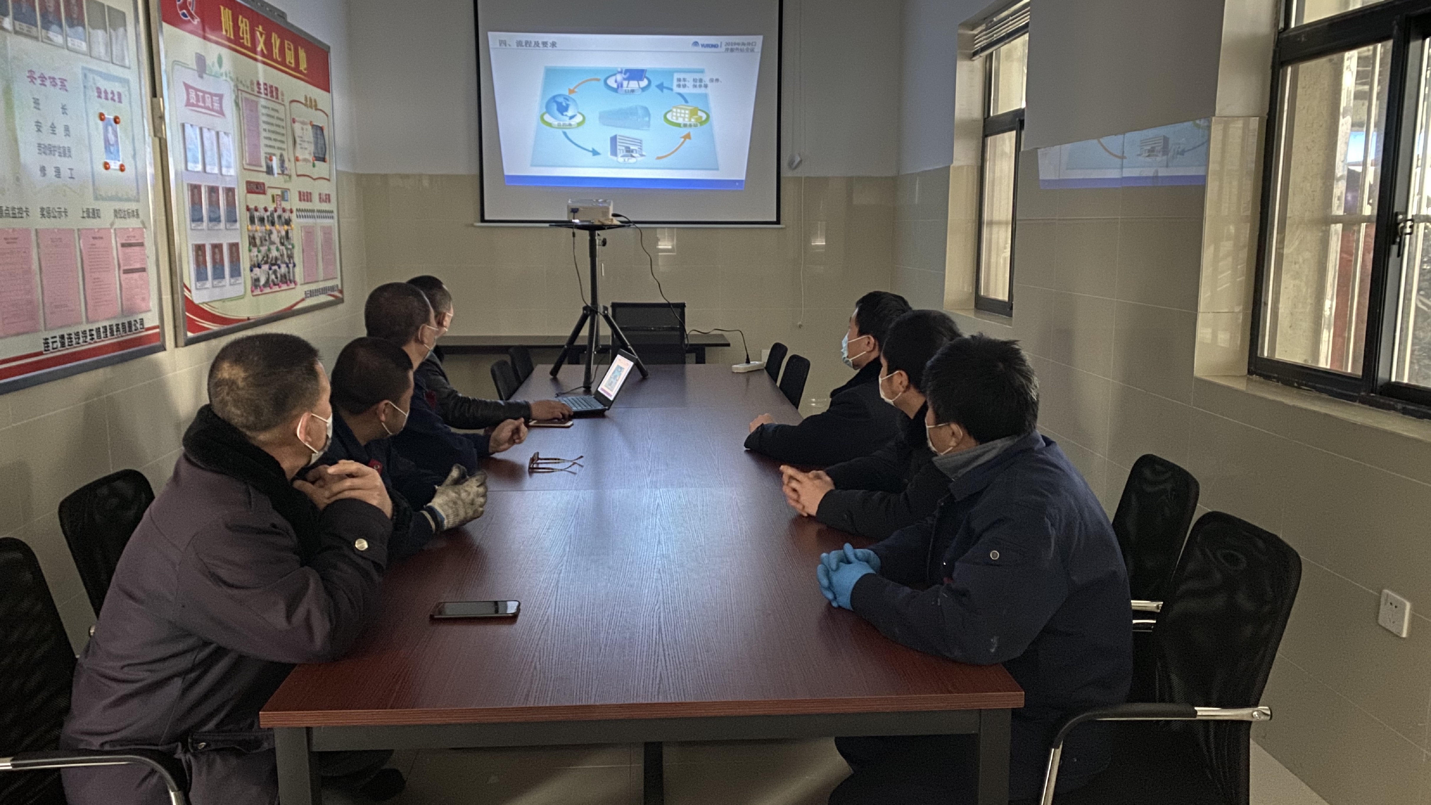 为进一步规范宇通出口车辆离港前业务服务流程,提升出口车辆离港前业务质量,保障新型冠状病毒疫情期间营收稳定,3月3日下午,修理公司组织宇通《海外服务部口岸服务站服务管理规定》培训,本次培训由车间主任胡可勇主讲,所有作业人员参加。