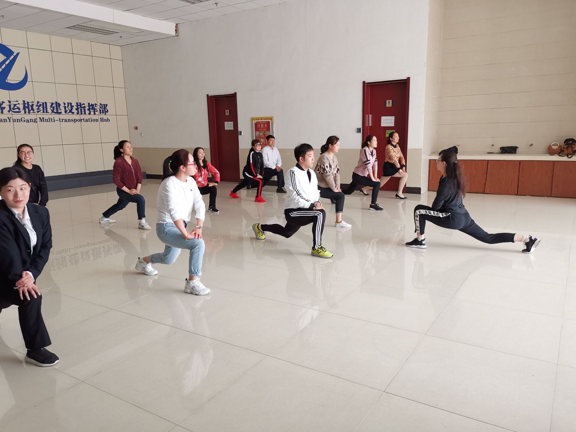 510日上午,汽车公司工会邀请了专业的广播操教练马老师在风光旅行社大厅教授广播马老师一边讲解每一节的动作要领,一边示范,标准的广播操动作激发了大家学习的热情。从分解动作到完整动作,职工们一边学,一边记,一边做,八节操学下来,职工已是大汗淋淋,但脸上洋溢着会心的笑容。