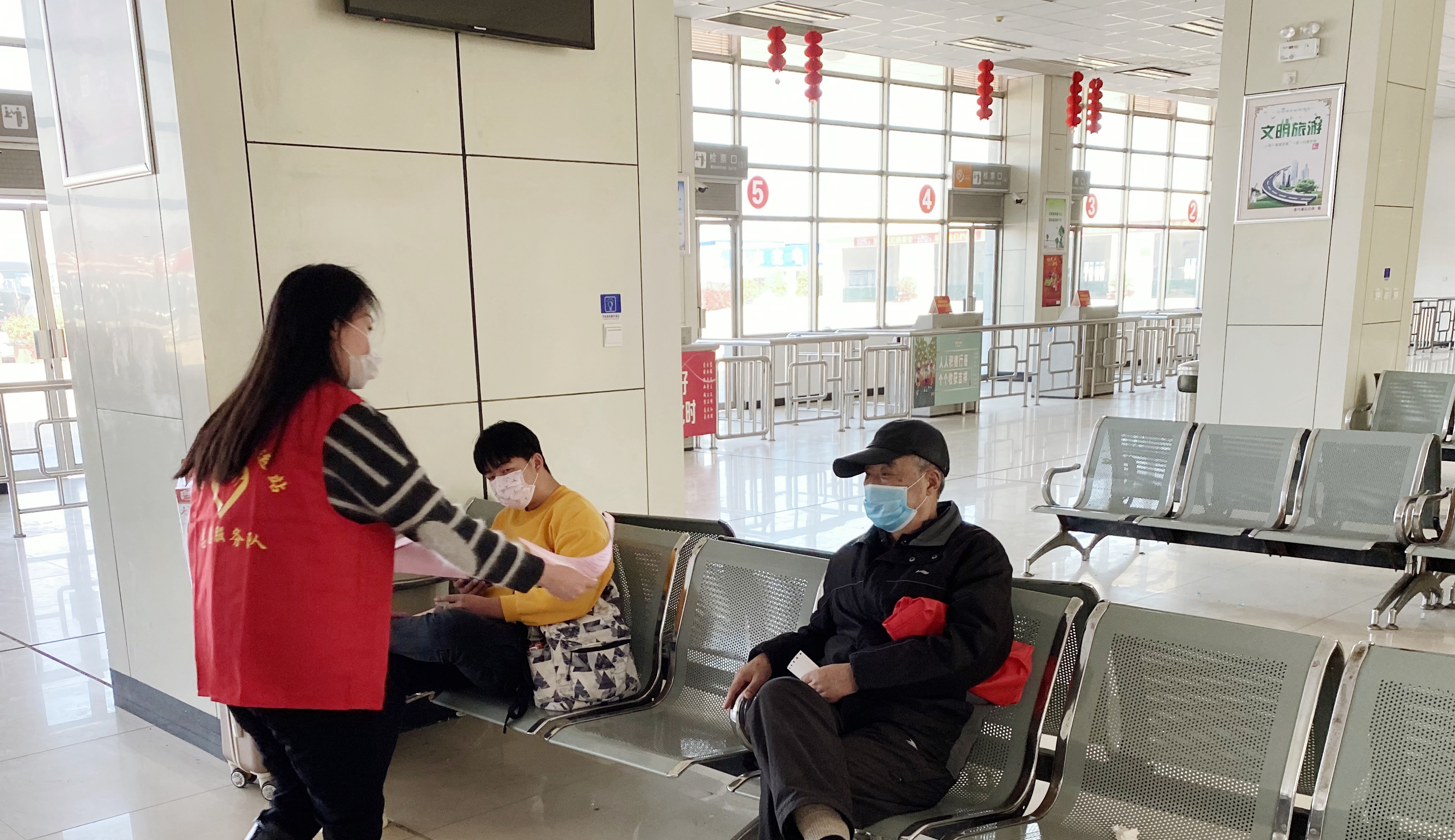 在灌云客运站的候车大厅,志愿者面向旅客发放了道德宣传图及一些有德育价值的书籍,从“讲堂”到“大厅”,宣讲身边好人事迹,由内而外进行传承与发扬,活动取得了良好效果。