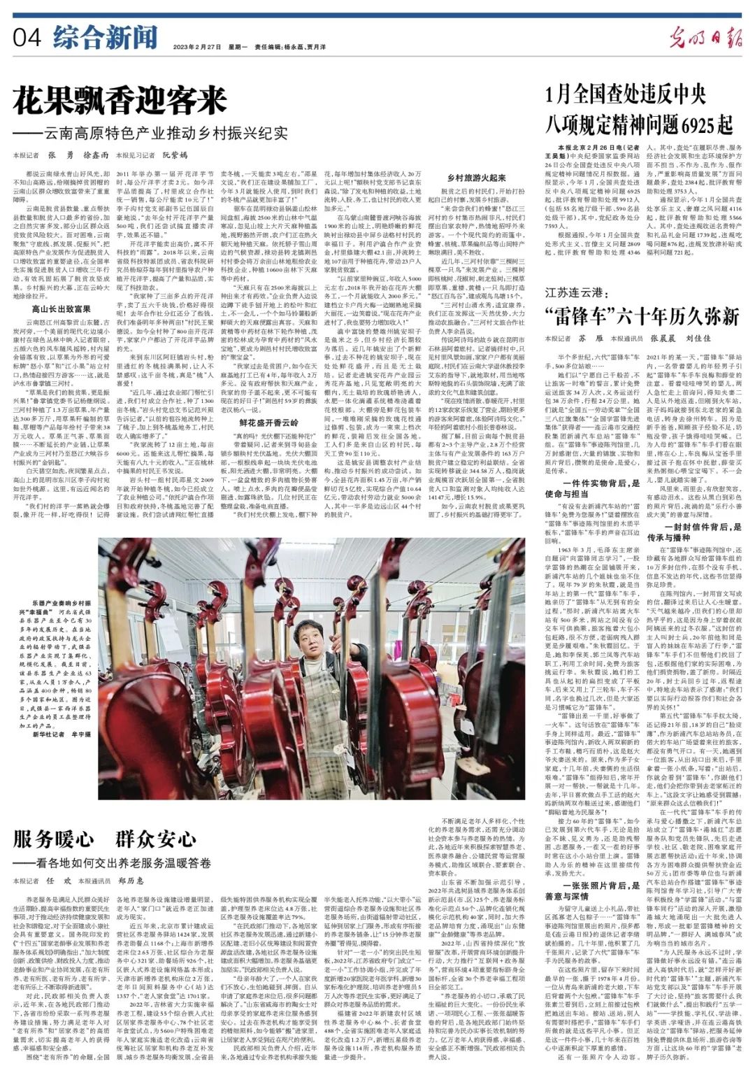 为留守儿童送上小礼品,带社区孤寡老人包粽子……“雷锋车”事迹陈列馆里展出的照片,很多都是《连云港日报》的退休记者李绪斌拍摄的。几十年里,他积累了几千张照片,记录了六代“雷锋车”车手为民服务的故事。