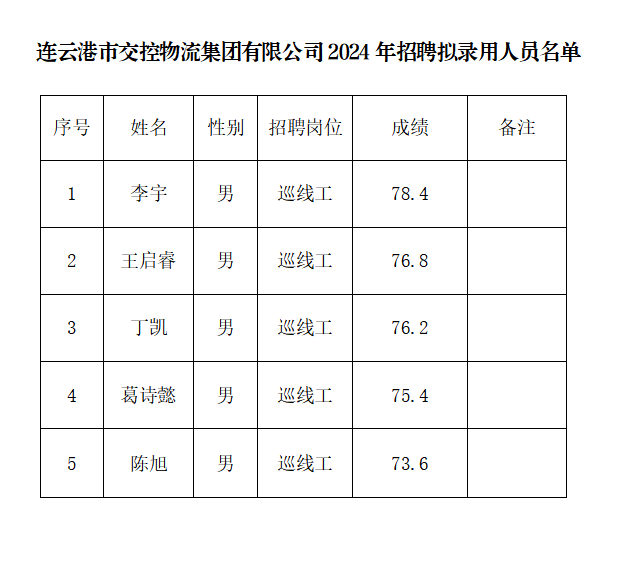 根据连云港市交控物流乐玩app最新版下载,乐玩(中国)有限公司2024年招聘简章有关规定和要求,现将本次招聘拟录用人员名单予以公示。