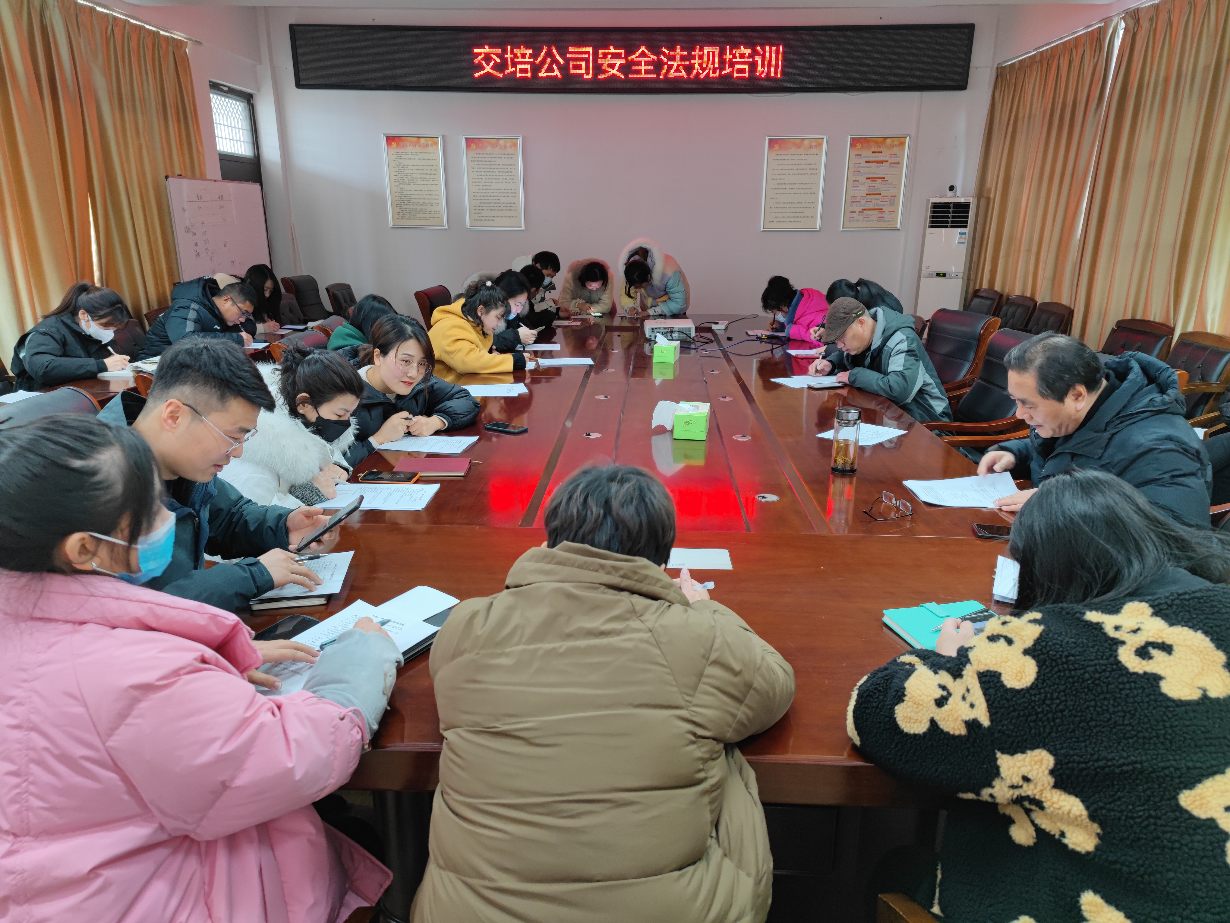 为加强公司法治思想建设,提高员工法律意识,2022年1月17日下午,交培公司组织技工学校、公司机关全体员工开展《中华人民共和道路交通安全法》、《中华人民共和安全生产法》等相关法规培训。