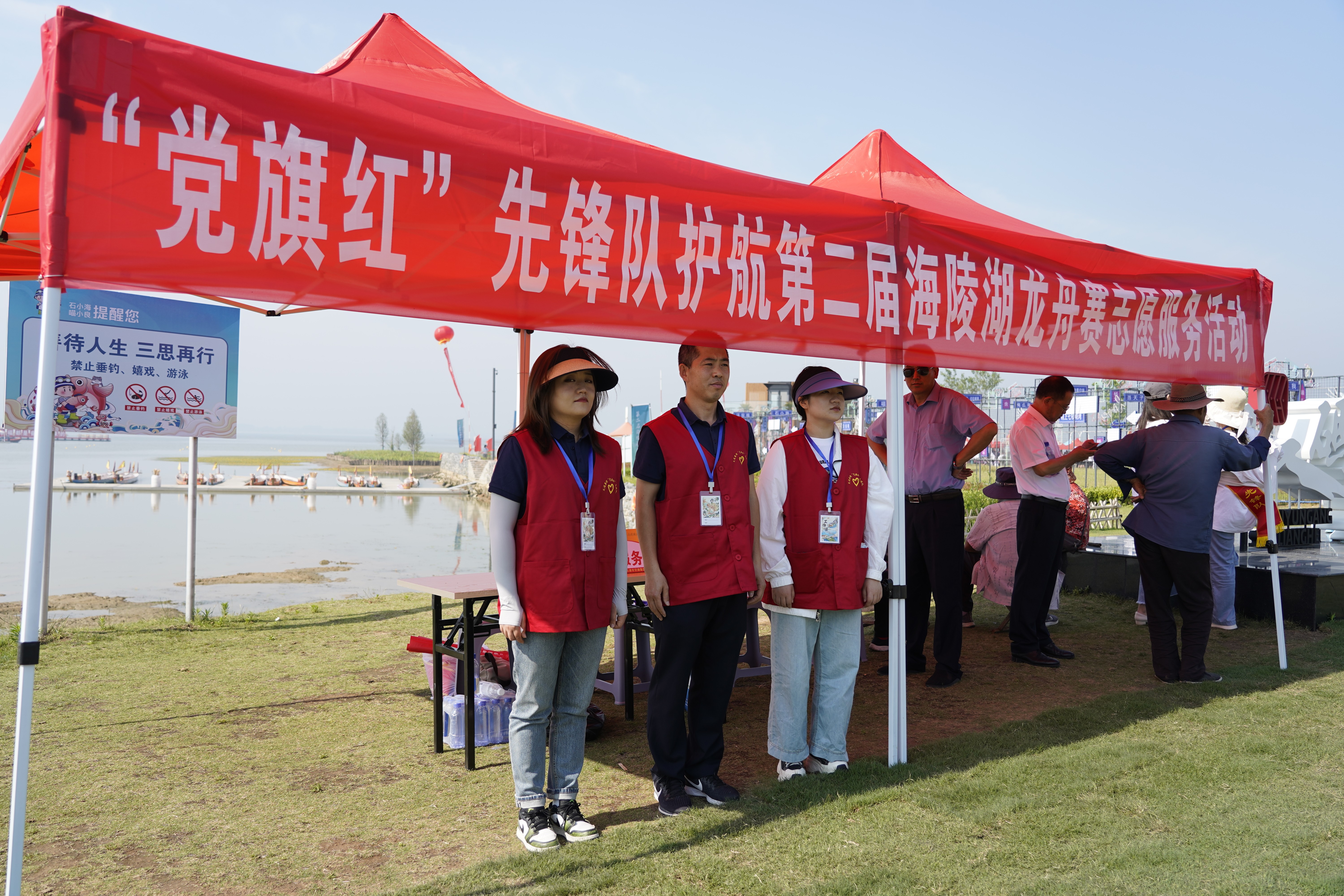 赛龙舟,迎端午。6月22日,2023年第二届海陵湖龙舟赛开赛,为保障本次活动有序开展,交通乐玩app最新版下载,乐玩(中国)组织“党旗红”先锋队在石梁河龙舟赛活动期间开展志愿服务活动,全天候驻扎在现场一线,全力保障活动顺利举办。