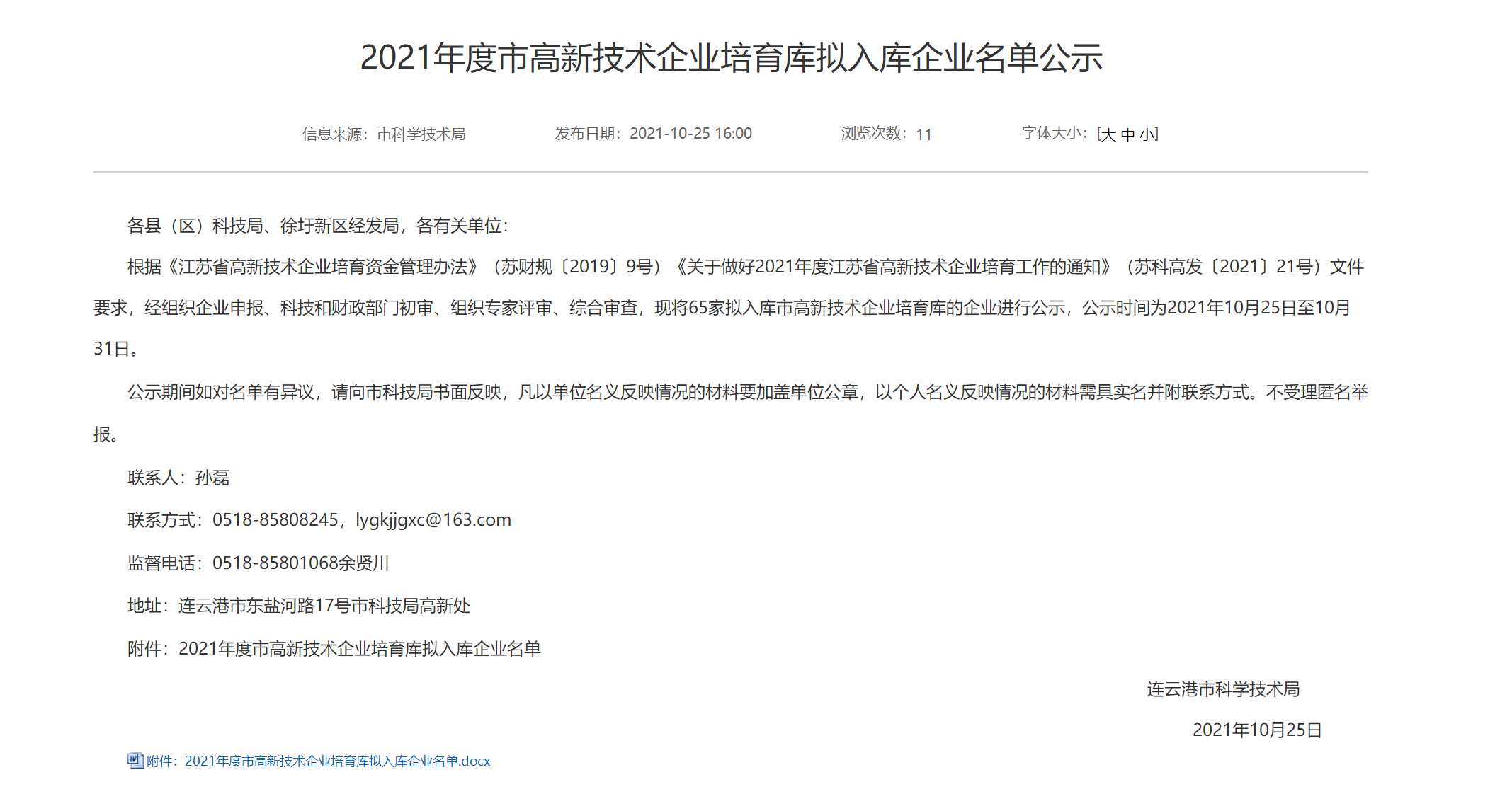 明茂公司紧盯高新技术企业申报政策,统筹协调稳步推进申报工作,经市科技部门初审、组织专家评审、综合审查推荐等程序,20211031日,顺利通过连云港市高新技术企业培育库2021年度入库公示。