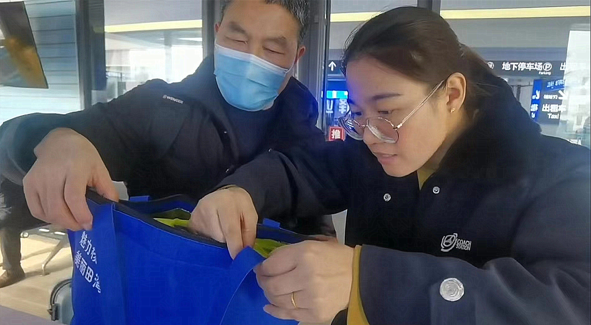 元旦节这天,旅客张大爷准备到高铁站坐车到上海,拉着行李箱,提着满满的手提袋,从公交站台刚下车,手提袋“嘣”的一声,带子断了。“这怎么办啊?还没上车呢?这一路上怎么拿啊?”急坏了张大爷,抱着手提袋、拖着行李箱,四下张望,显得十分焦急。芈丹发现大爷的窘迫,赶紧上前询问,得知是带子断了,赶忙请大爷到雷锋车驿站稍作休息,并利用驿站提供的针线包迅速为他缝好了袋子。“没想到你们‘雷锋车’驿站还有针线包,太谢谢了。”张大爷激动地说。