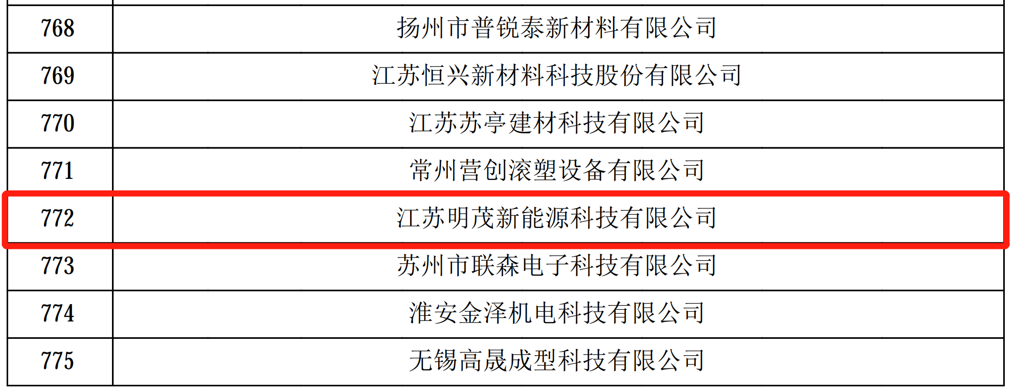 2022年10月17日,全国高新技术企业认定管理工作领导小组办公室发布了《江苏省认定机构2022年认定的第二批高新技术企业备案公示名单》,江苏明茂新能源科技有限公司(以下简称“明茂公司”)榜上有名,明茂公司成功通过高新技术企业认定。