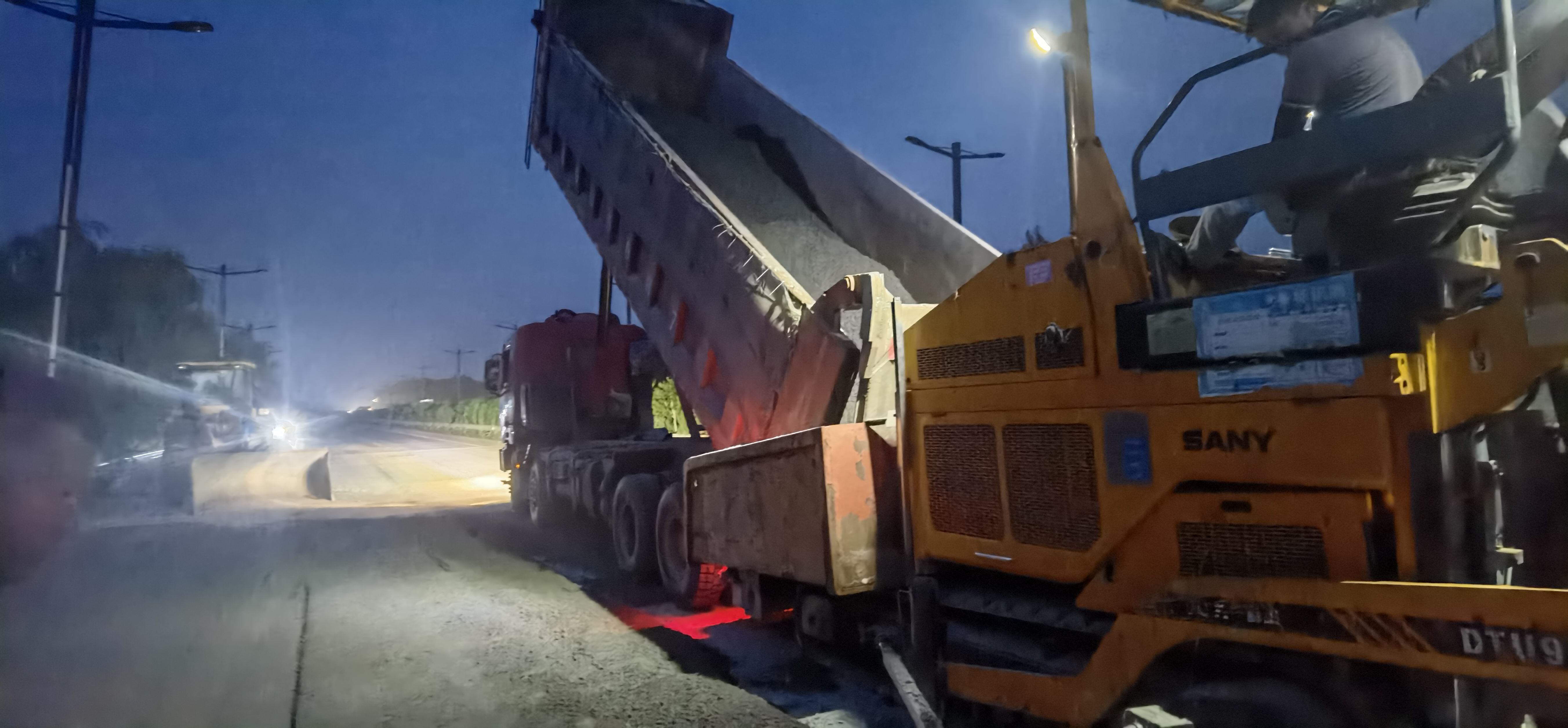 此段道路维修施工正值雨季,为了保安全、保质量、保进度,项目小组每天顶着酷暑高温天气现场巡查,关注工程进度和高温天气安全作业状况,项目部与各参建单位共同研究部署,优化施工方案,利用早晚时间,抓工期抢进度,比原计划提早十天于7月31日完成路面主体工程。