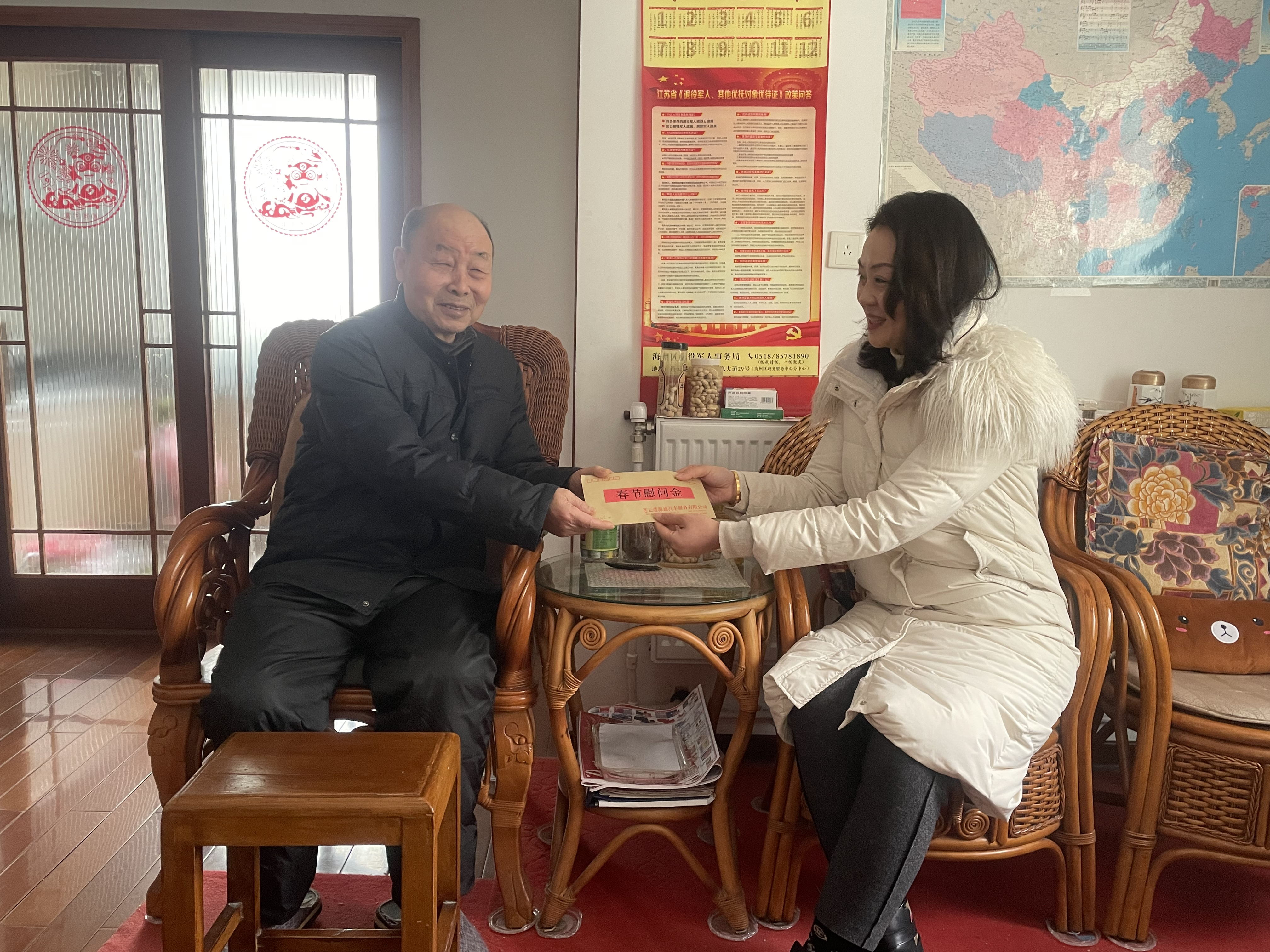 寒冬腊月送温暖,浓浓情意暖人心,在2022年新春佳节来临之际,1月24日上午,汽服汽车销售事业部副经理刘海燕与办公室相关工作人员一行,入户看望慰问了公司退休军转干部穆忠芝,向老干部送去新春的问候和节日的祝福。