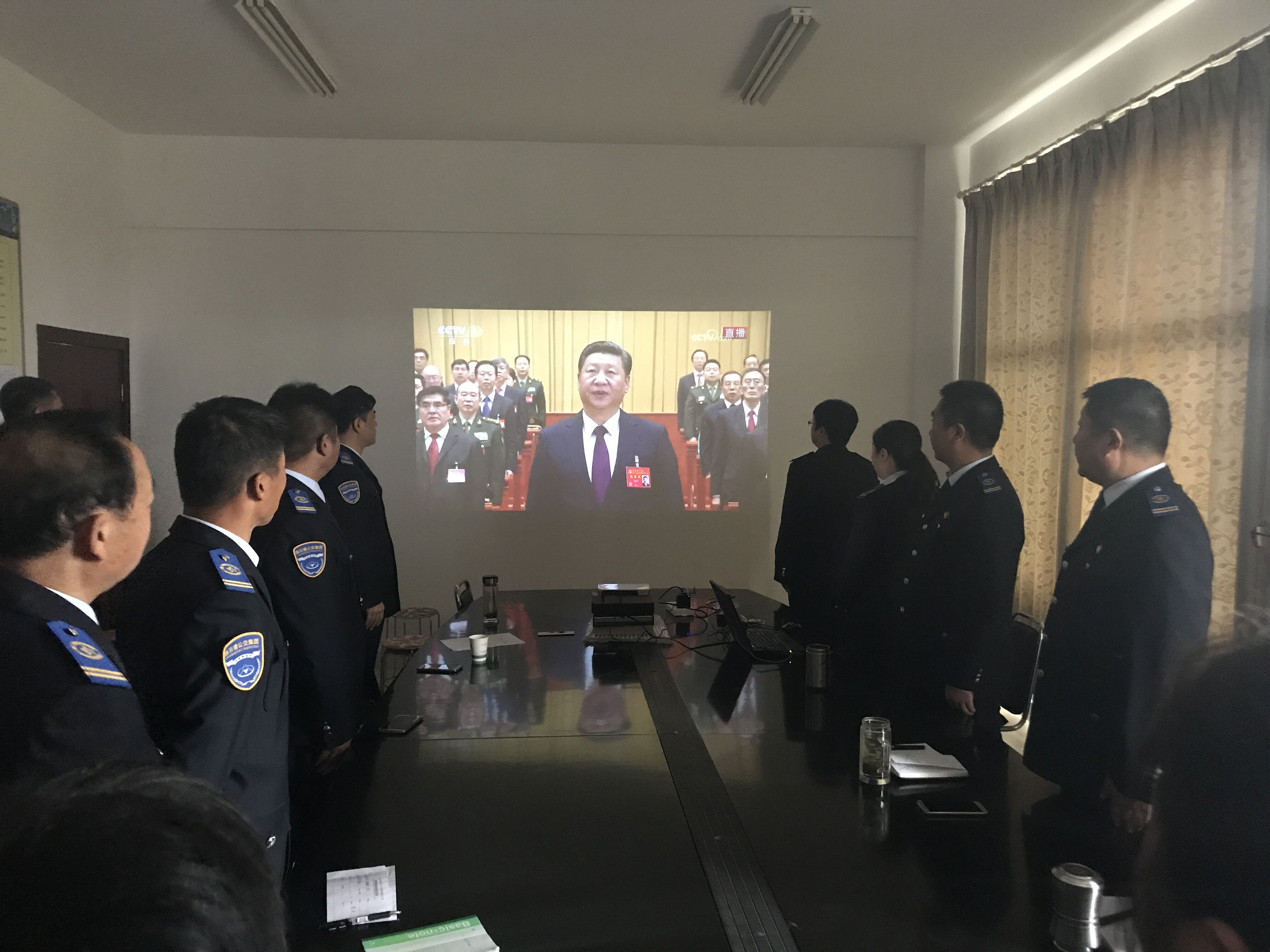 在组织收看的同时,大家纷纷表示,认真学习贯彻落实好党的十九大精神,进一步提高认识,统一思想,把思想和行动统一到党的十九大精神上来以良好的精神状态和优异的工作成绩,为新时代中国特色社会主义建设贡献自己的一份力量。