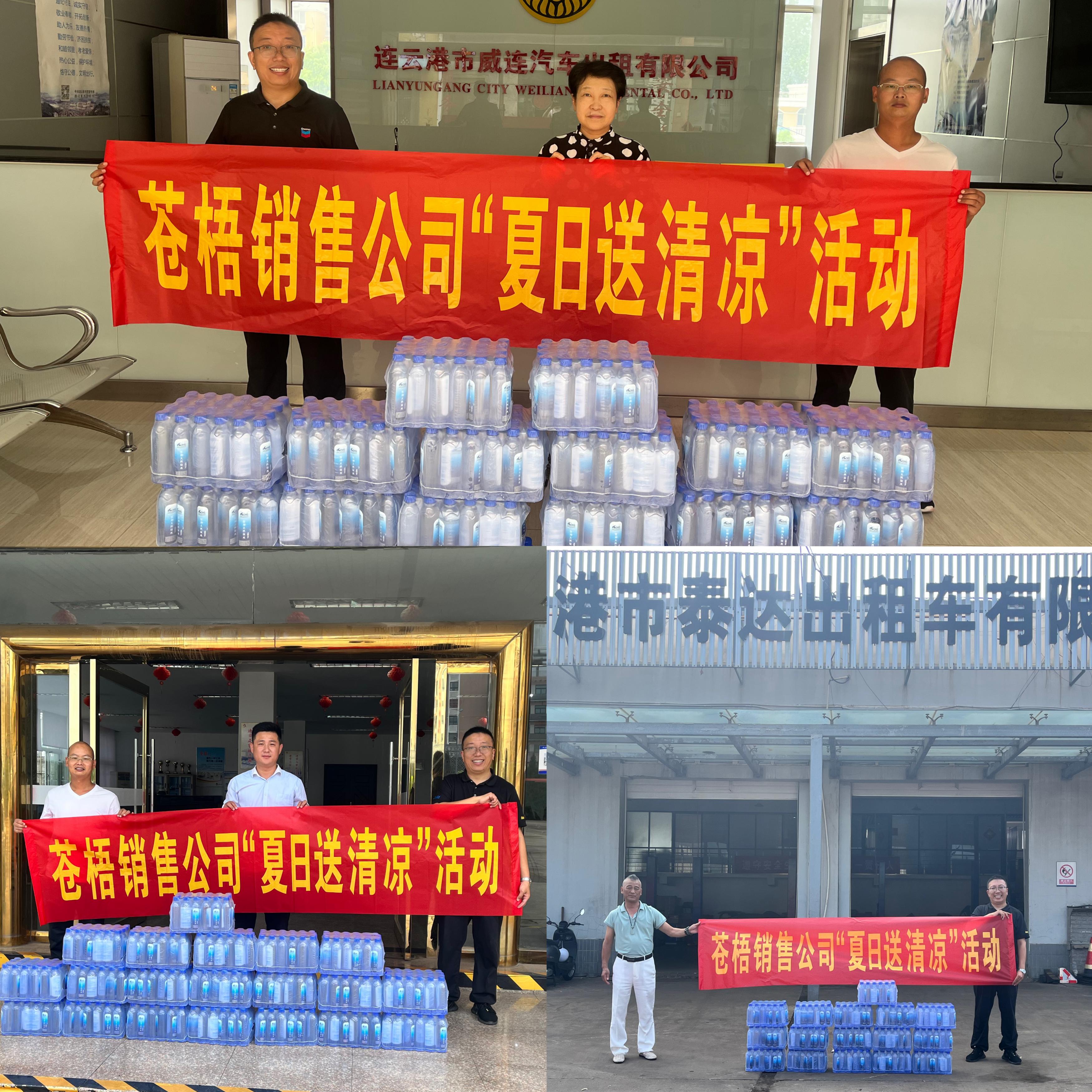 当天上午,苍梧销售公司的相关人员一行,先后走访慰问了连云港市威连出租车公司、阳光出租车公司、泰达出租车公司等用车大客户,为他们送去批量矿泉水,感谢出租车驾驶员们酷暑中依然奋战在工作岗位上,为港城人民出行提供优质、舒适、安全的出行服务。慰问中,公司相关人员与各出租车公司负责人进行了沟通交流,详细了解各出租车公司的需求,并向出租车驾驶员们讲解夏季新能源车辆的用车注意事项,提出合理性用车建议。各出租车公司的负责人对此次送清凉活动纷纷表示感谢,希望彼此能够更进一步深入合作,实现双方共赢。