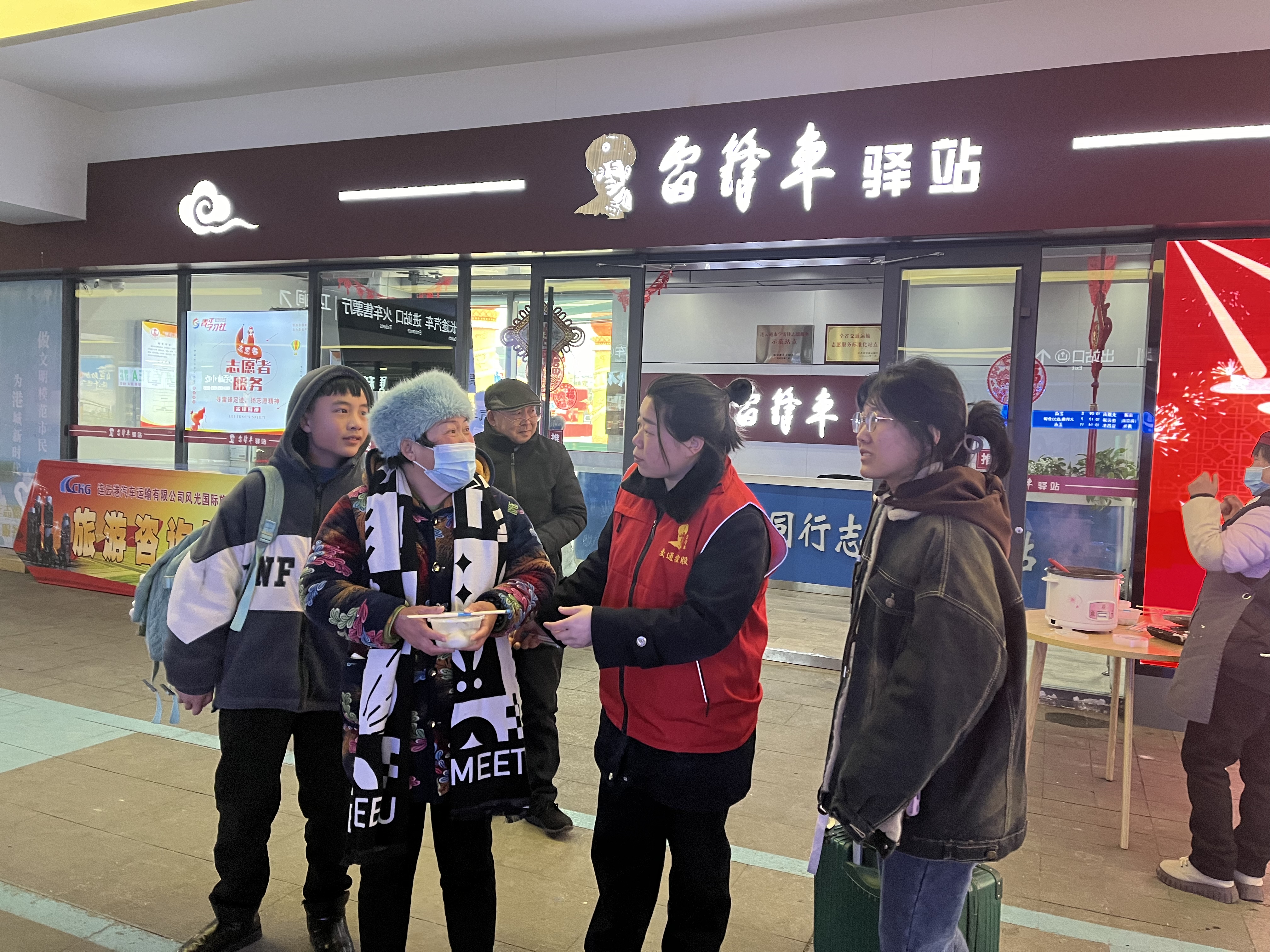 在“雷锋车”驿站,“雷锋车”手们将一碗碗美味的元宵盛给来往的旅客。一位来自山东青岛的旅客品尝汤圆后,赞不绝口。“感谢‘雷锋车’为我们营造了一个温馨的旅途环境,让我们度过了一个难忘的元宵佳节。”一碗碗寓意幸福、美满的汤圆让整个驿站充满了浓厚的节日氛围。