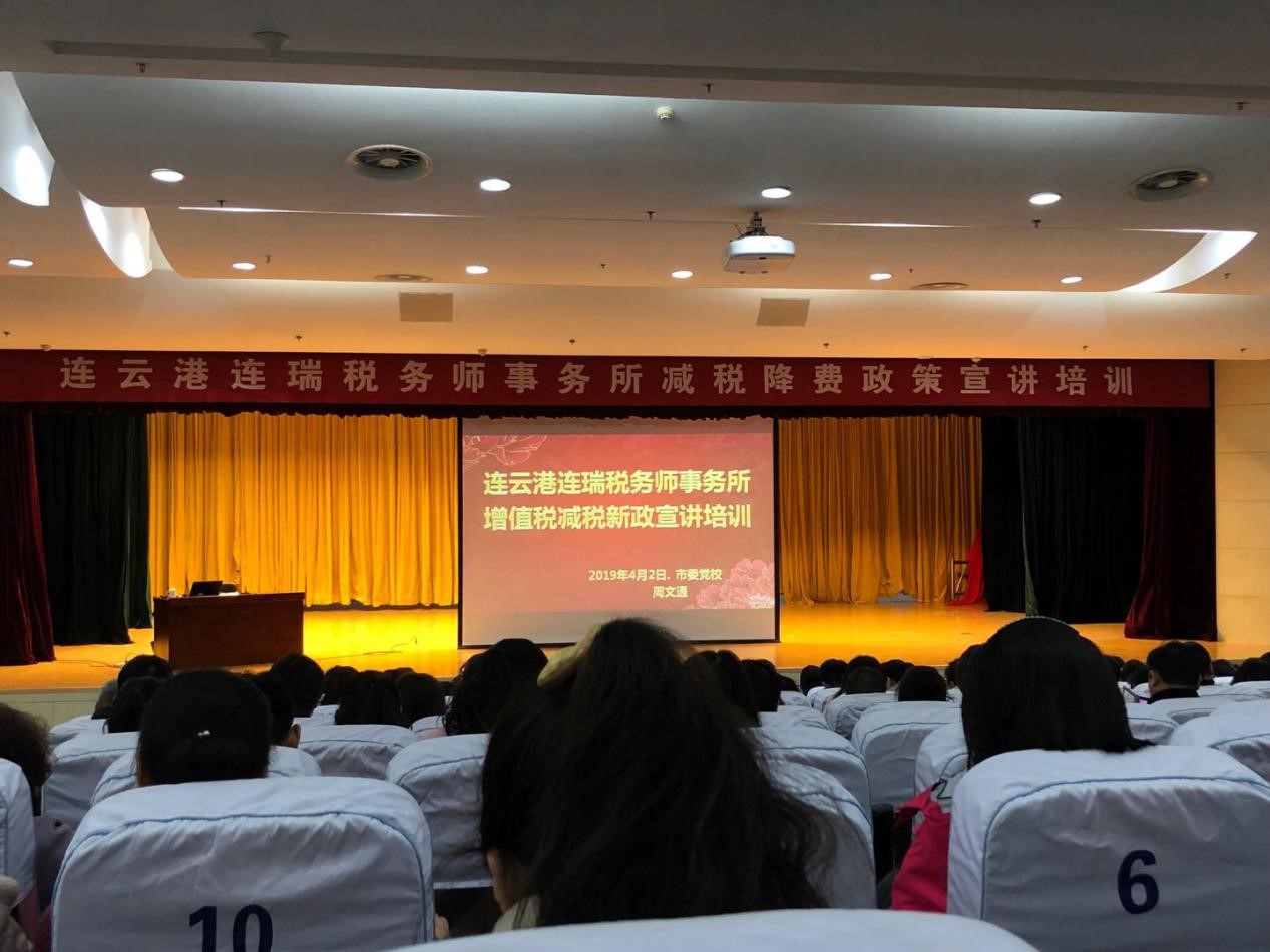 为了让纳税人更加及时、全面、准确地掌握减税降费政策,4月2日连瑞税务师事务所在党校第一报告厅举行降税率、进项税额加计抵减等增值税新政的义务宣讲,明茂公司财务人员参加了此次听课,进一步学习了解增值税新政策。