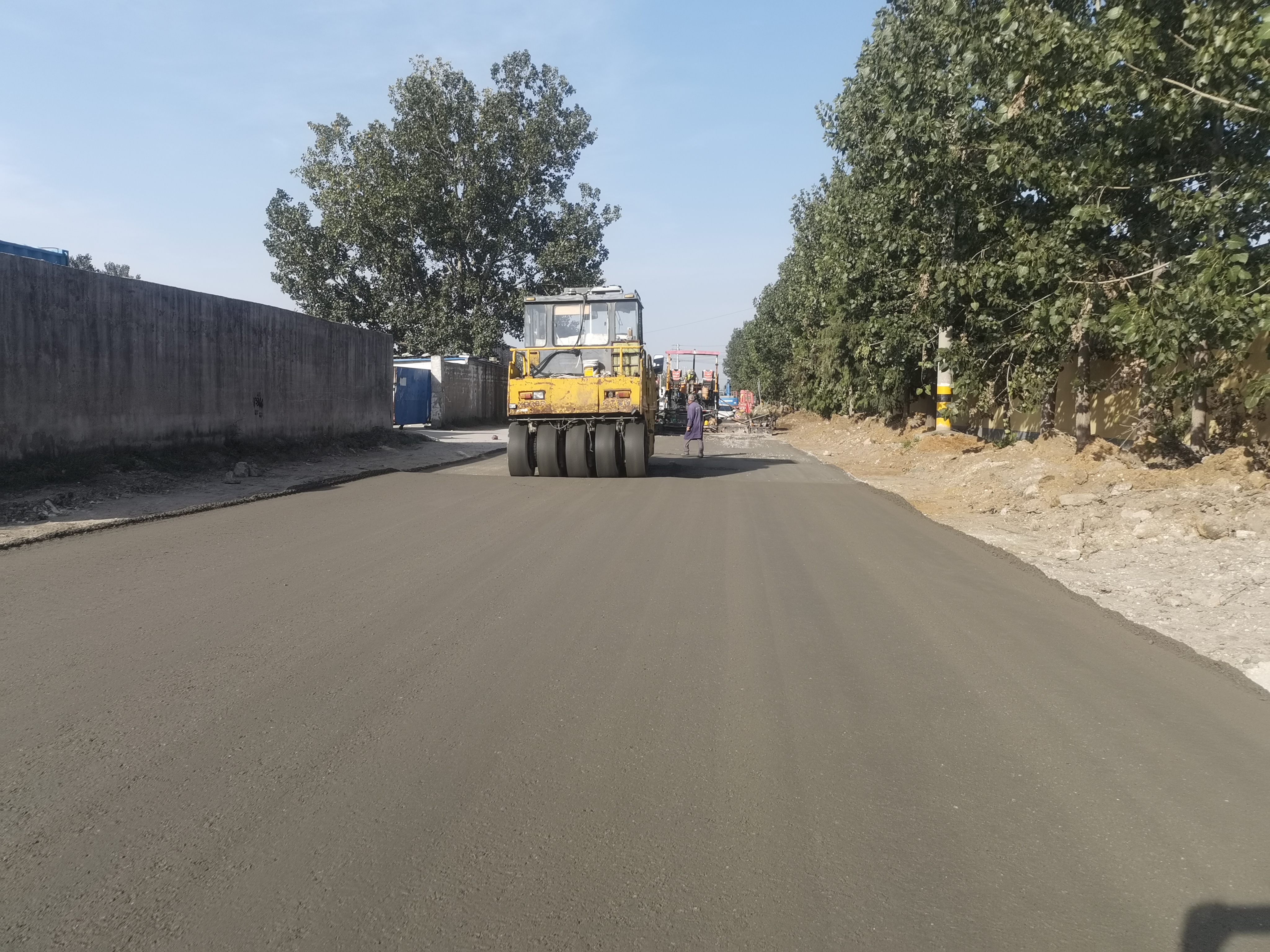江苏海建公司洪东线X353改建工程开始进行水稳摊铺