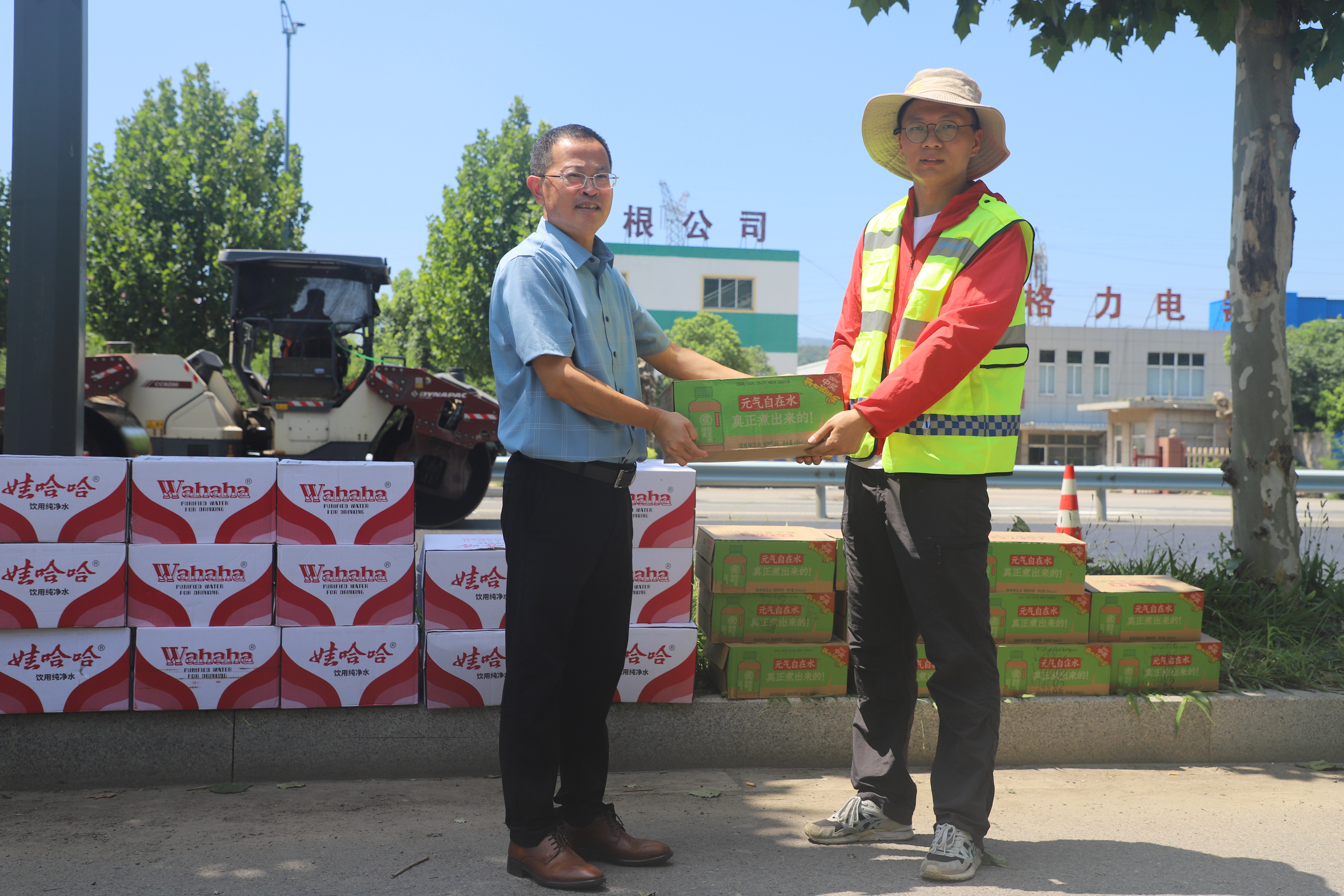 活动中,丰达公司领导班子深入一线,看望慰问在一线战高温、保畅通的广大职工,为他们送去矿泉水、饮料等防暑降温物品,将公司的关怀送到一线职工的手里、心上。走访慰问过程中,党总支书记、董事长王梁洲与一线职工亲切交谈,叮嘱他们注意防暑降温和安全生产,实施高温错时作业,切实做好劳动保护工作,同时要求各单位把防暑降温工作落实到每个工地、班组和职工个人,把维护广大职工安全和健康权益落到实处,尽力为职工营造良好的工作环境。