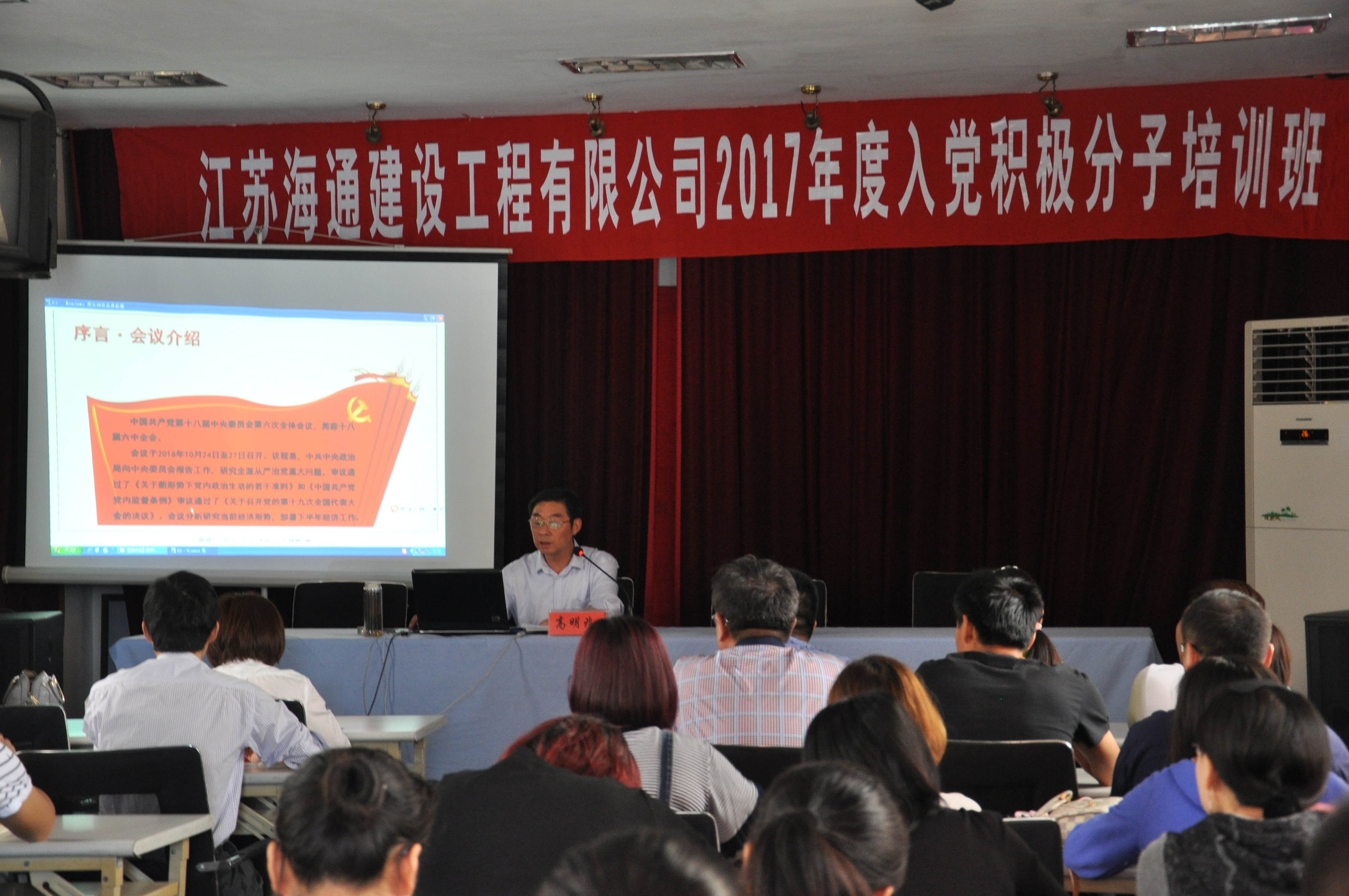 6月13-14日,江苏海通公司在多功能厅举办2017年度入党积极分子培训班。公司党委书记高明兆同志作动员讲话、纪委书记曹新军主持开班仪式,并都亲自参与授课。来自江苏海通公司3个党总支19个基层党支部,及交通乐玩app最新版下载,乐玩(中国)、海通物流、交通技工学校和丰达公司,共56名入党积极分子参加了培训。