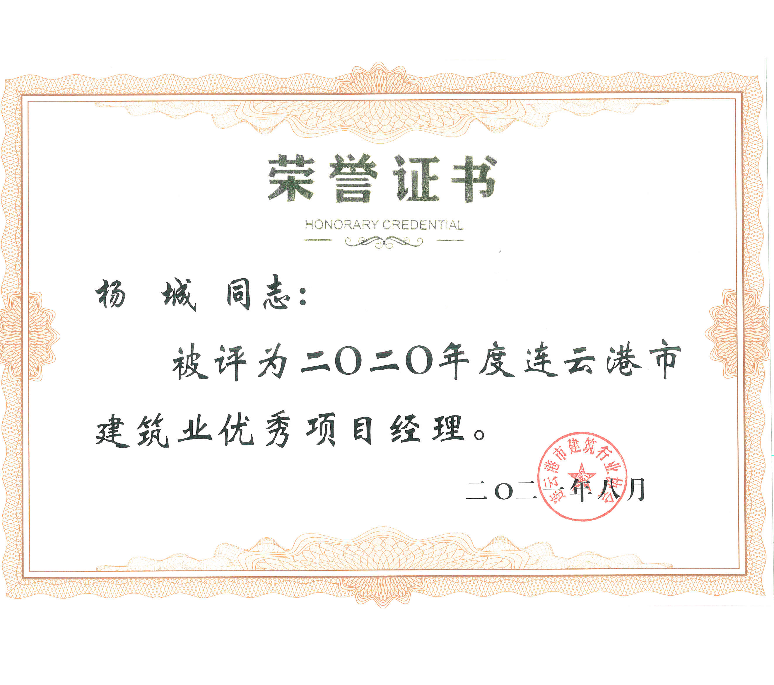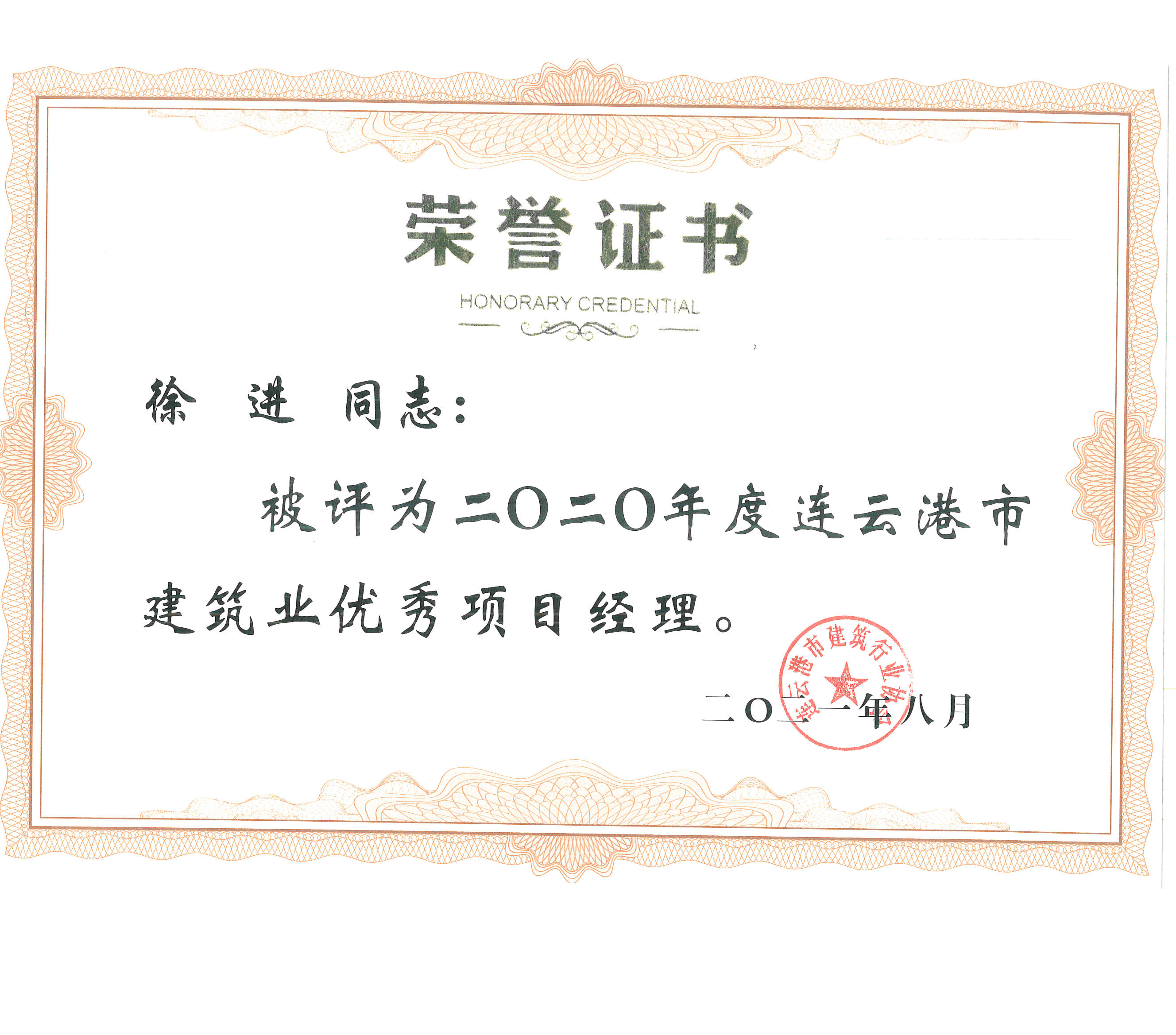 此外,公司董事长、党委书记仲济强被评为“2020年度连云港市建筑业优秀经理”,刘智、杨城、徐进、王建成被评为“2020年度连云港市建筑业优秀项目经理”。