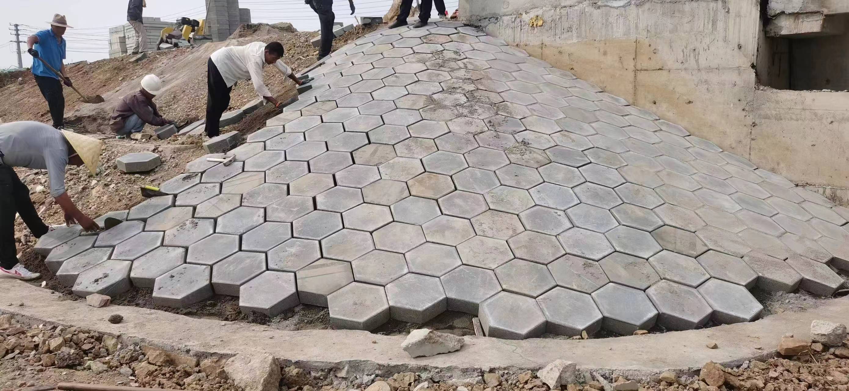 沭北运河大桥桥头两侧护坡各15米,采用M7.5浆砌片石基础+C25混凝土预制实心六角块+C25混凝土长方形预制块压顶组合铺设。全桥共计铺设C25混凝土预制实心六角块23m3。锥坡同时采用M7.5浆砌片石基础+C25混凝土预制实心六角块组合铺设全桥锥坡共铺设C25混凝土预制实心六角块约21m3。为保证工程质量,项目部制定桥面附属工程施工方案,对作业人员进行专项施工技术及安全交底施工过程中,强化过程管控,严格把控原材料、混凝土质量等工序,确保工程顺利完工