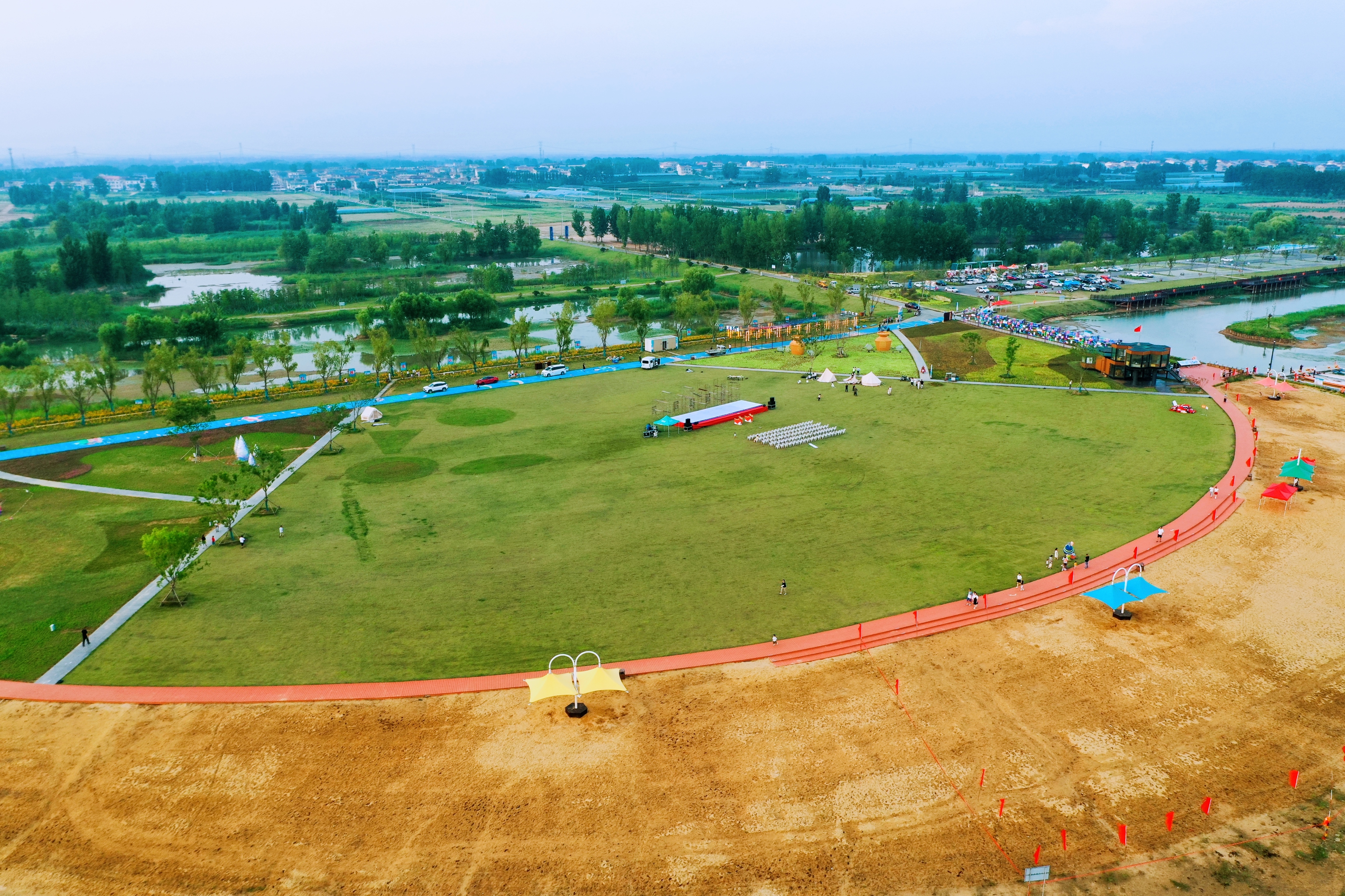 与渔人码头隔水相望,乐玩app最新版下载,乐玩(中国)打造的石梁河水库生态修复二期工程先导示范点黄金沙滩已与20日完工开园,废弃砂坑航道在生态修复改建下,因地制宜地成为了一处展现沙文化、水文化、库区劳动文化的观光打卡景点。“日月征程”“渔舟芭蕾”等7个主题沙雕各有寓意,“趣味沙世界”“迷你亲子水世界”“月亮湾”等5个主题片区将风光与功能科学搭配,驿站、盥洗室、茅草屋、停车场等服务设施齐备,为湖畔观景游玩提供了无限可能。
