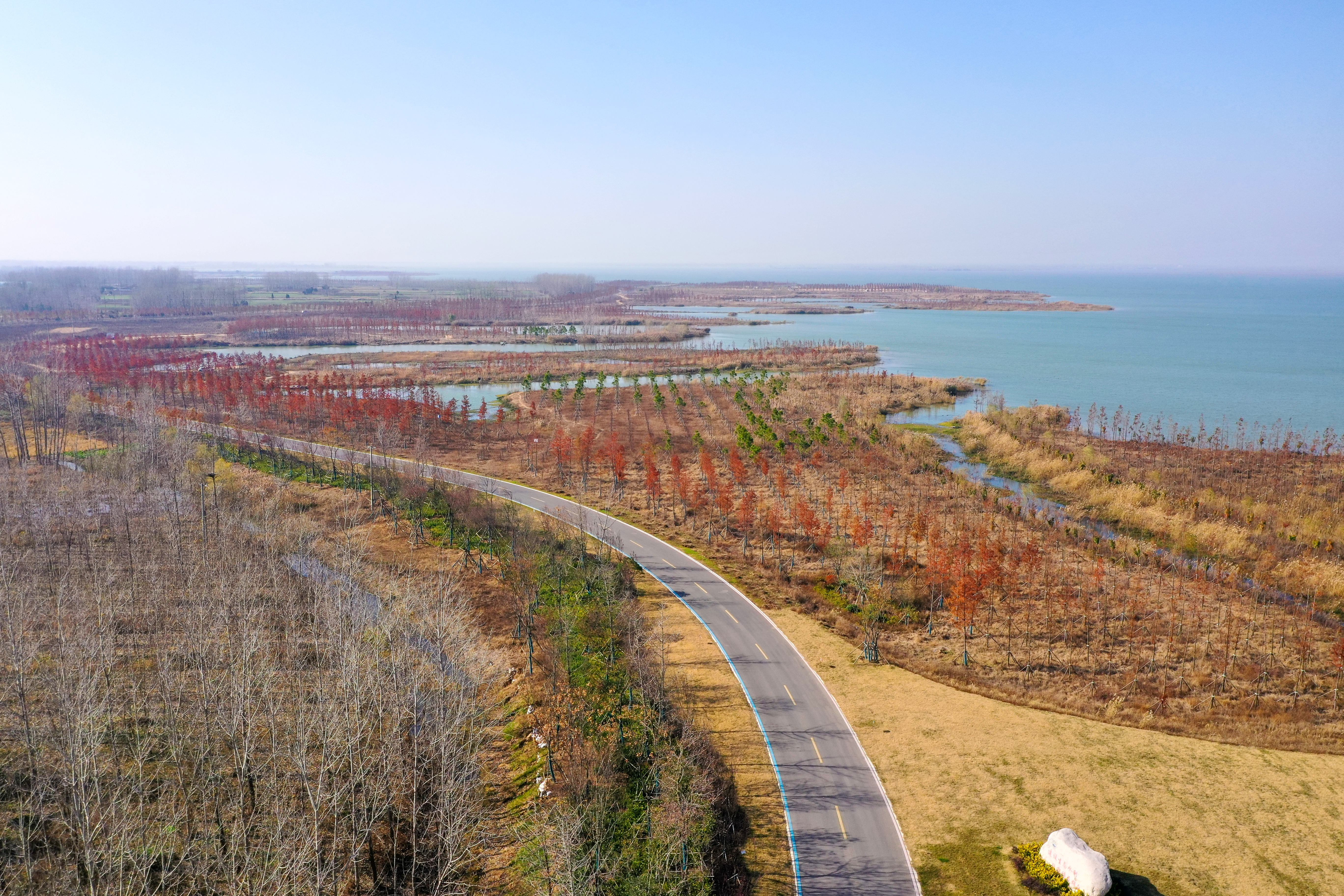 本次石梁河库区复绿工程分区域、针对性有序开展,重点针对环湖道路东海段、环湖路内侧荒滩、北辰大桥下游北岸涵养林三大区域进行种植。今年计划栽植苗木约5万株,复绿面积约50万平方米,主要以池杉、栾树、柳树、榉树等色叶植物为基调,全面覆盖库区,形成层林浸染的视觉效果,营造自然、生态、乡野的滨水景观,规划建成集旅游功能、湿地公园、休闲度假于一体的多功能绿色生态长廊。