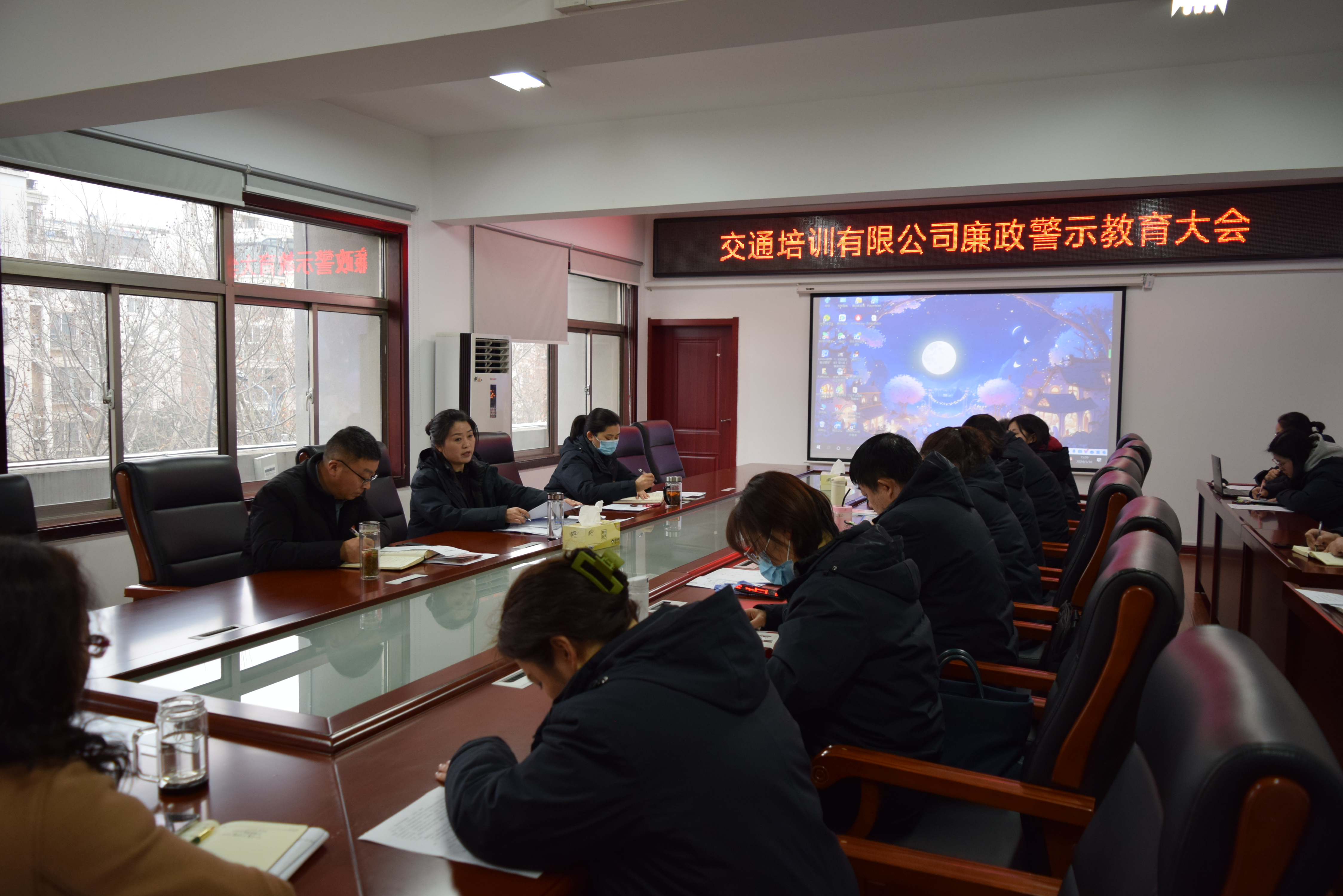 1月30日下午,交培公司召开廉政警示教育大会,公司党委书记、总经理李霞等领导班子成员及公司全体中层干部等人员参加了会议,会议由公司纪委书记、工会主席陈志文主持。