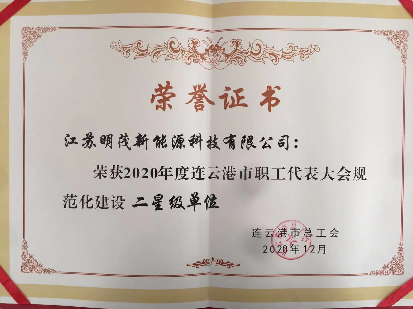 近日,经市总工会验收,明茂公司被授予“连云港市职工代表大会规范化建设二星级单位”。
