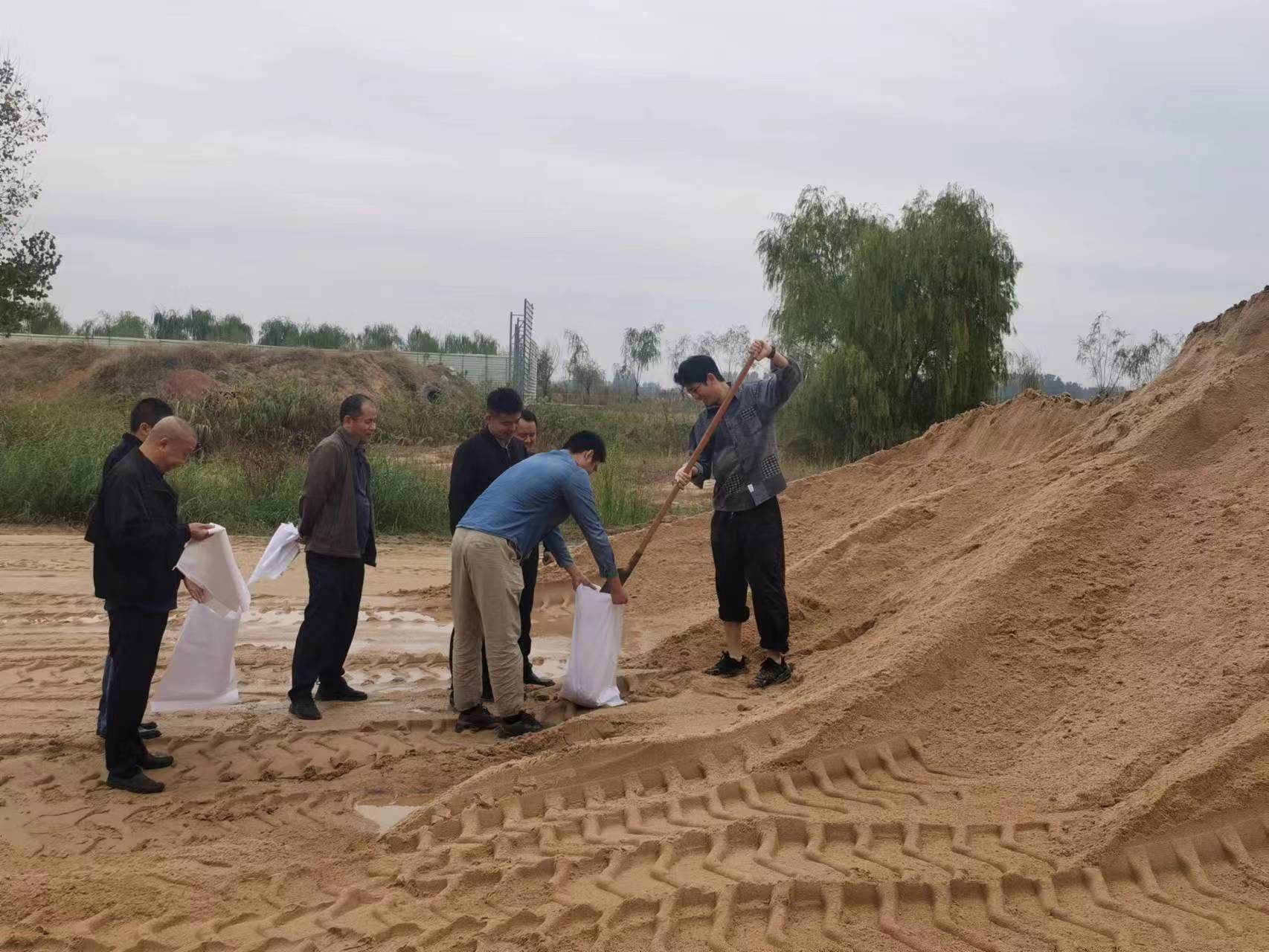 在生产现场,王兵带领黄砂公司员工在堆场进行实训交流,从取样、检测、结果判断、样品保存等各环节详细讲解了产品检测的关键技术要求。