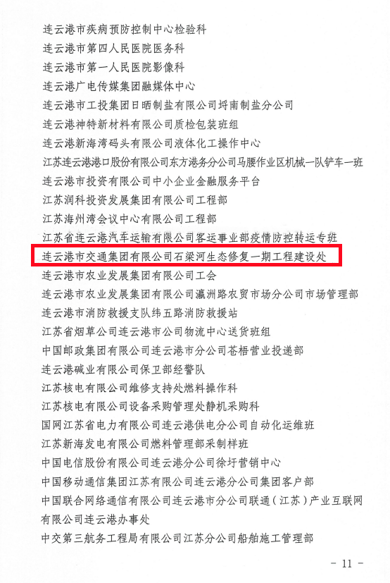 近日,石梁河生态修复一期工程建设处被连云港市总工会授予“2022年度连云港市工人先锋号”荣誉称号。