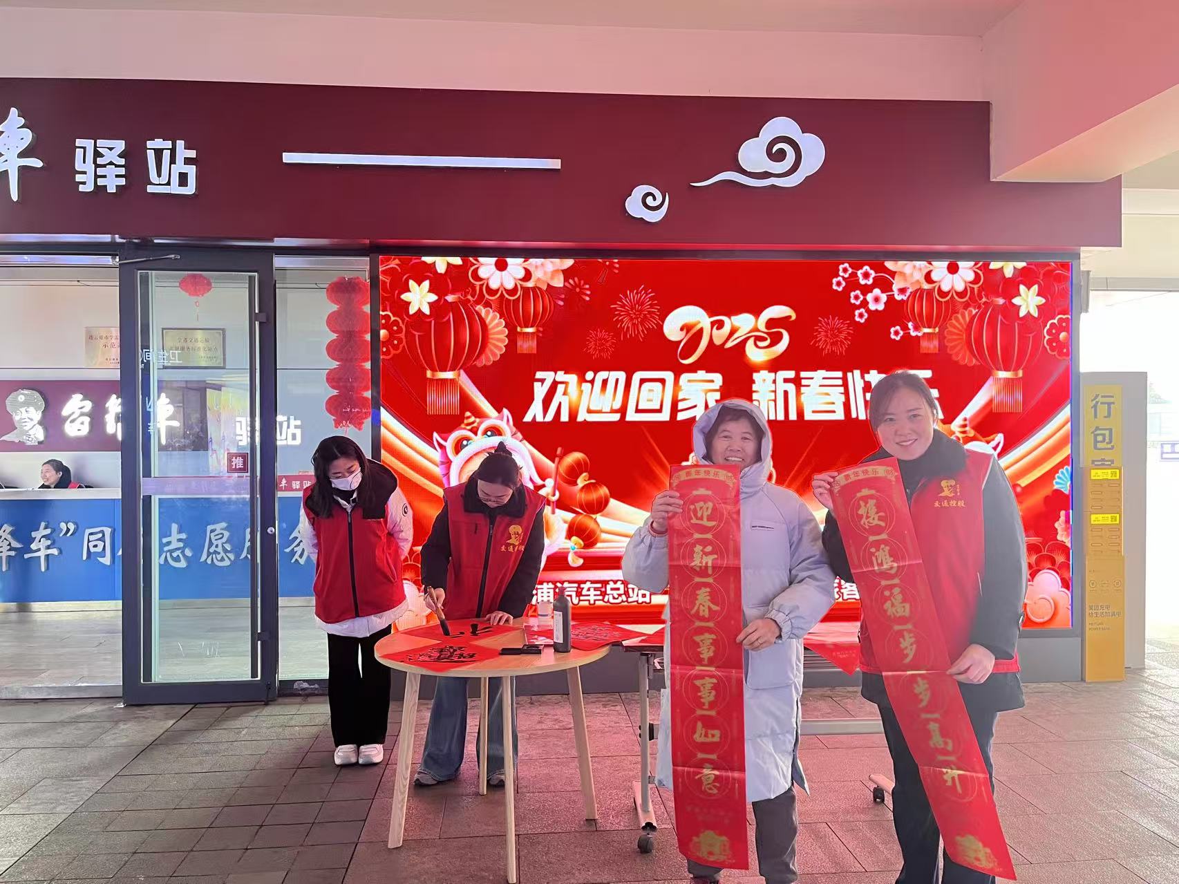 除了现场书写的春联,志愿者们还将一些提前精心准备好的精美春联送到旅客手中,让更多的人能够收到这份新春的祝福。一时间,整个“雷锋车”驿站前充满了欢声笑语,洋溢着浓浓的节日气息,让每一位过往的旅客都感受到了家的温暖。