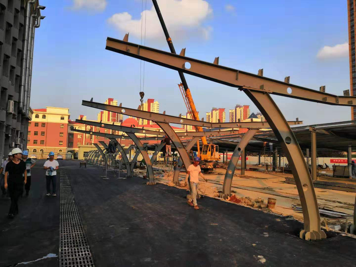 明茂公司承建的综合供能项目驾校东区雨棚光伏组件安装顺利完成,光伏板安装面积约1700m2。项目已进入到乐玩app最新版下载,乐玩(中国)院内施工阶段。目前,乐玩app最新版下载,乐玩(中国)院内双侧车棚和自行车凉棚钢结构主框架安装基本完成。