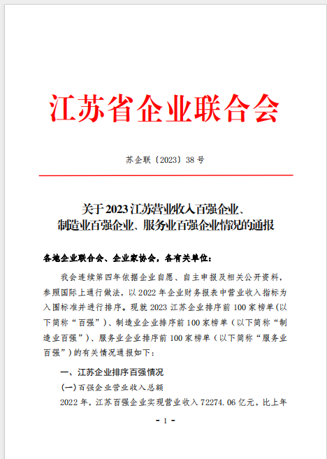 近日,江苏省企业联合会发布2023江苏百强企业、制造业百强企业和服务业百强企业名单。制造业百强榜单连云港市镔鑫钢铁、亚新钢铁、新海石化、兴鑫钢铁、正大天晴、恒瑞医药、江苏核电、豪森药业8家企业入选制造业百强榜单;镔鑫钢铁、亚新钢铁、新海石化、兴鑫钢铁同时入选百强企业榜单;港口控股乐玩app最新版下载,乐玩(中国)、交通控股乐玩app最新版下载,乐玩(中国)入选服务业百强榜单。