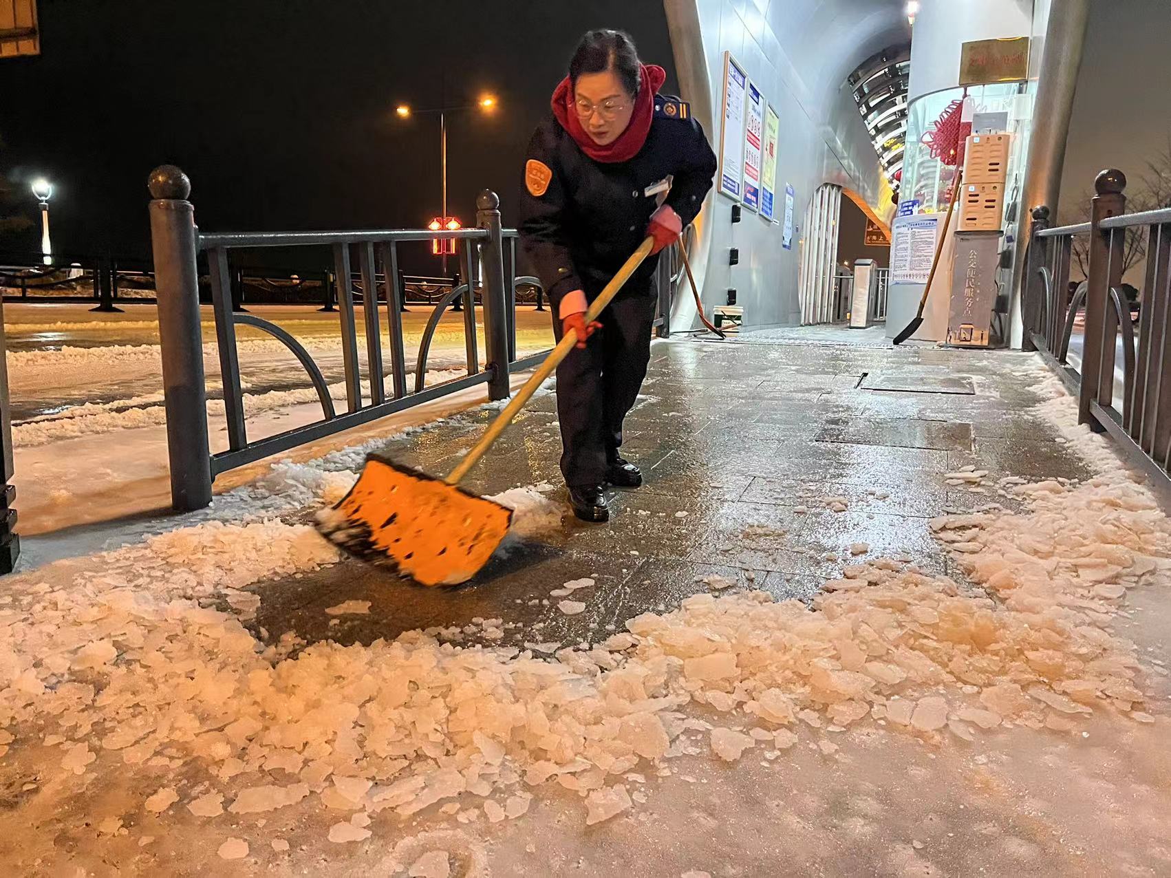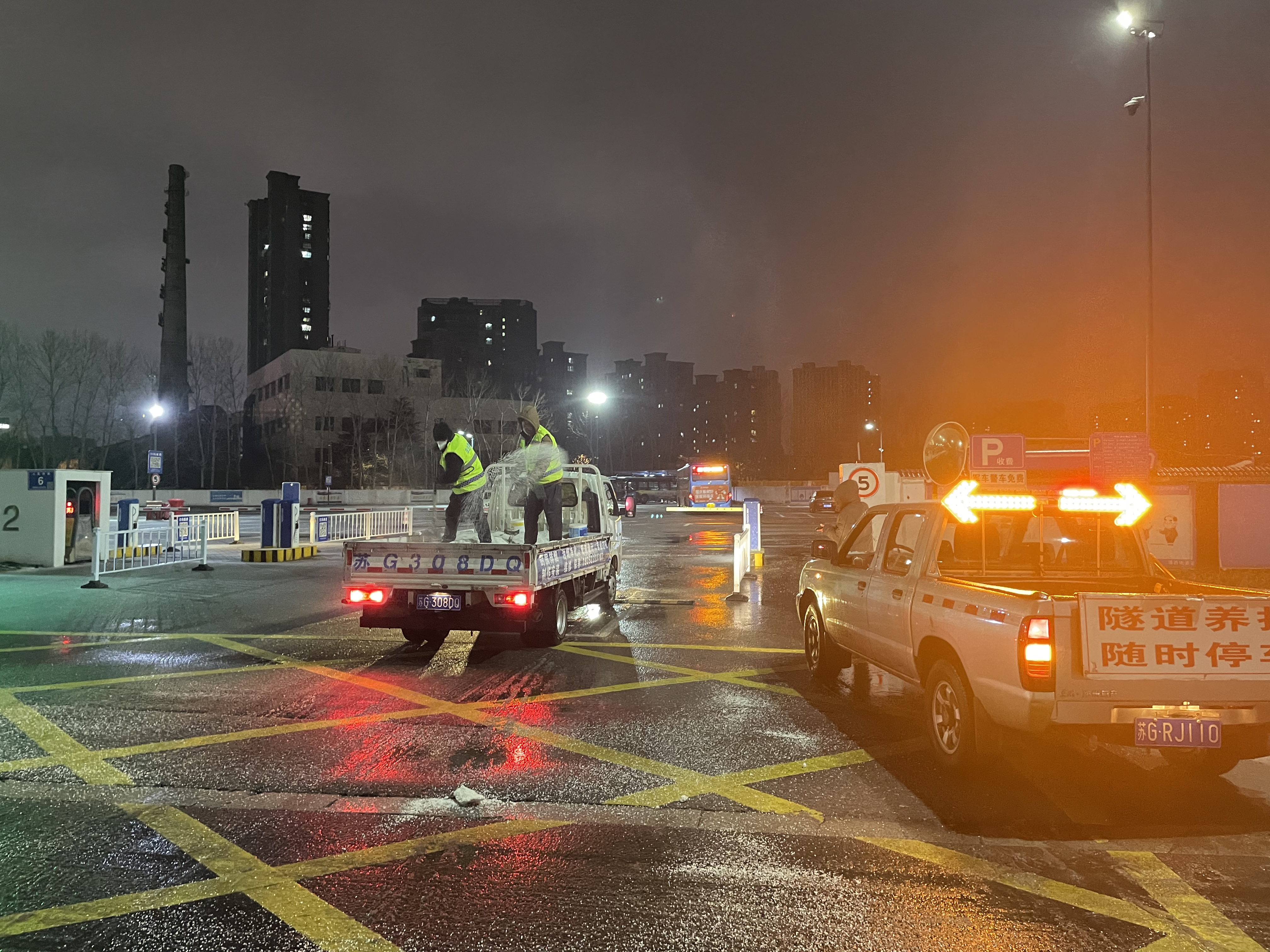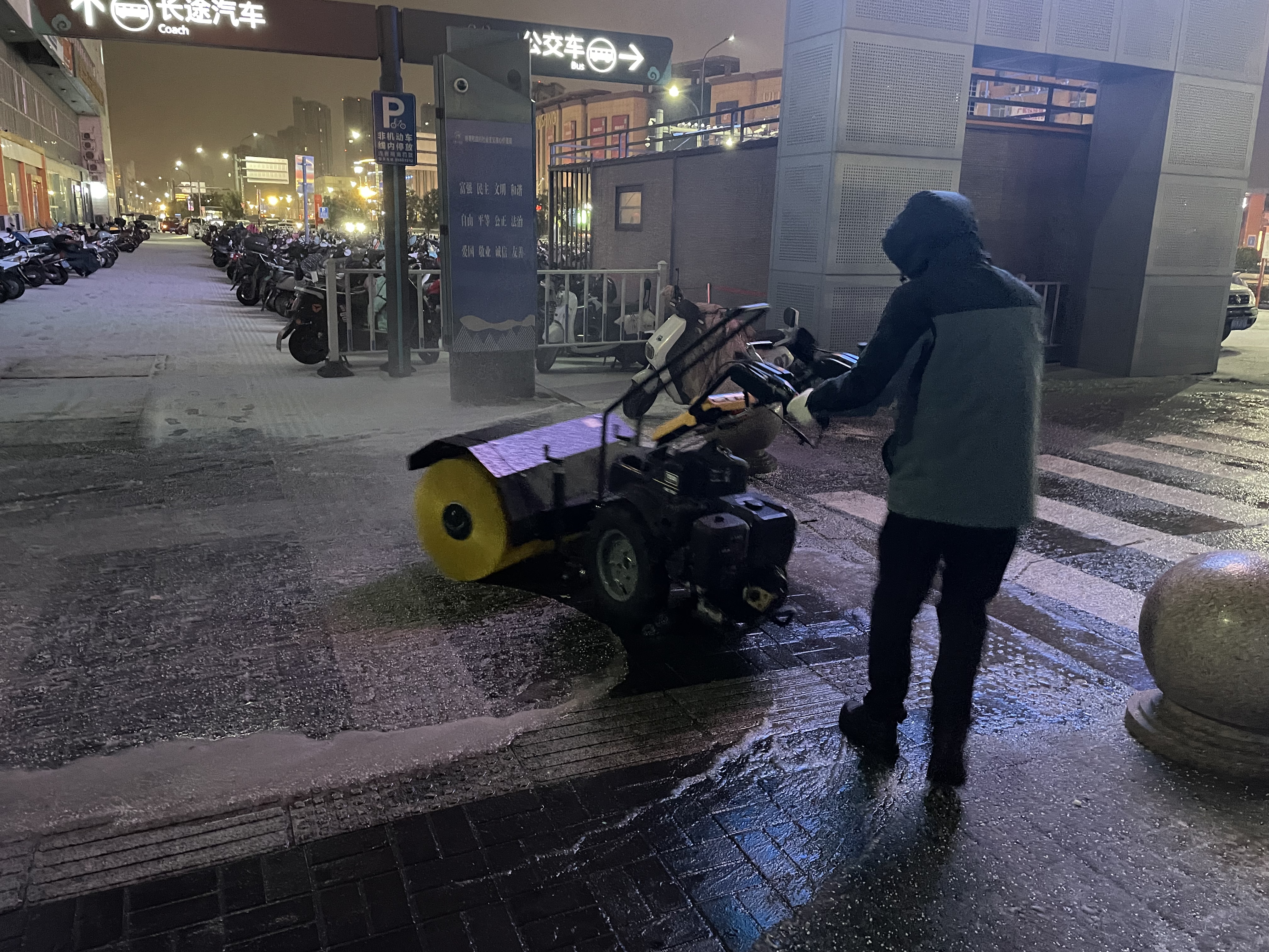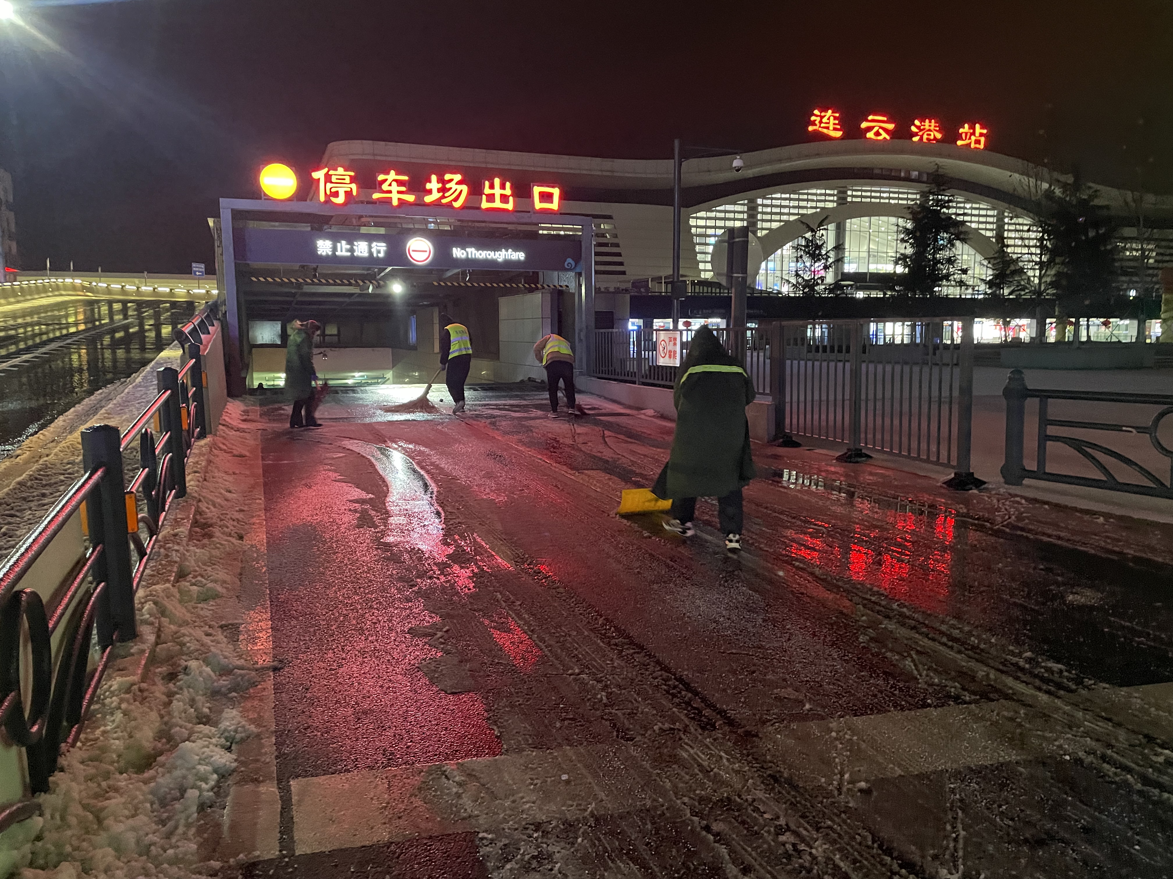 19日15时,交通乐玩app最新版下载,乐玩(中国)建立了3支应急队伍,共储备融雪剂8吨,并及时补充;应急车辆、手推式抛洒机、手推车、除雪机、铁锹、扫把等大量工具齐上阵。随着天气变化,交通乐玩app最新版下载,乐玩(中国)于19日21时启动冬季除雪防滑应急处置预案,一支由18人组成的融雪除冰应急小组迅速行动,冒冻雨开始逐步分段在出入口、人行通道、停车场出入口处等关键区域分段抛洒融雪剂,有效防止了道路结冰,确保了市民旅客的出行安全。20日,融雪除冰应急队伍增至35人,除雪设备、应急车辆数量翻倍,综合客运枢纽现场办全体干部职工24小时奋战一线,全域抛洒融雪剂5次,使用融雪剂总量达12吨。连夜的融雪除冰保障了连云港站早班高铁列车旅客的出行安全。