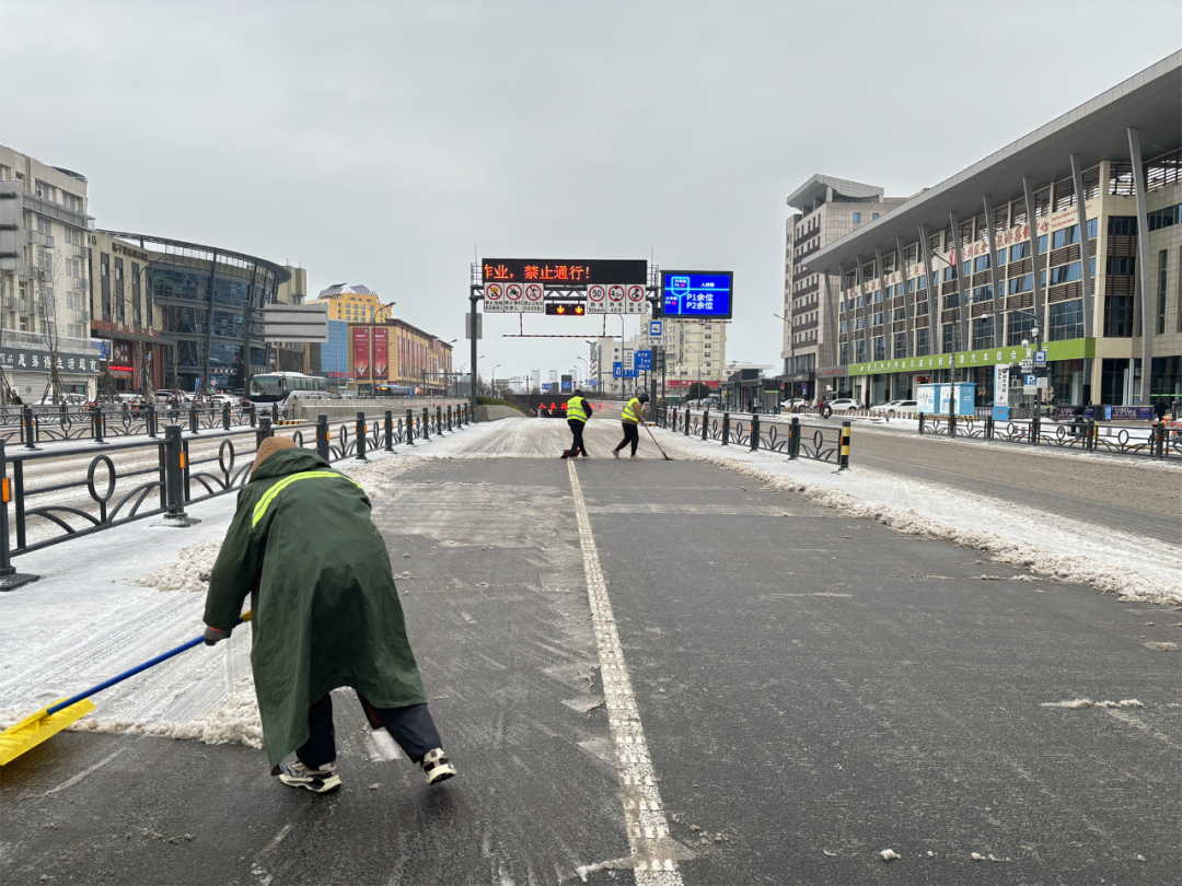 2月19日,我市出现低温雨雪冰冻天气,根据市扫雪除冰指挥部《关于启动扫雪除冰Ⅲ级(中雪)应急响应的通知》文件要求,丰达公司第一时间启动扫雪除冰应急预案,以雪为令,全力做好扫雪除冰应对工作。