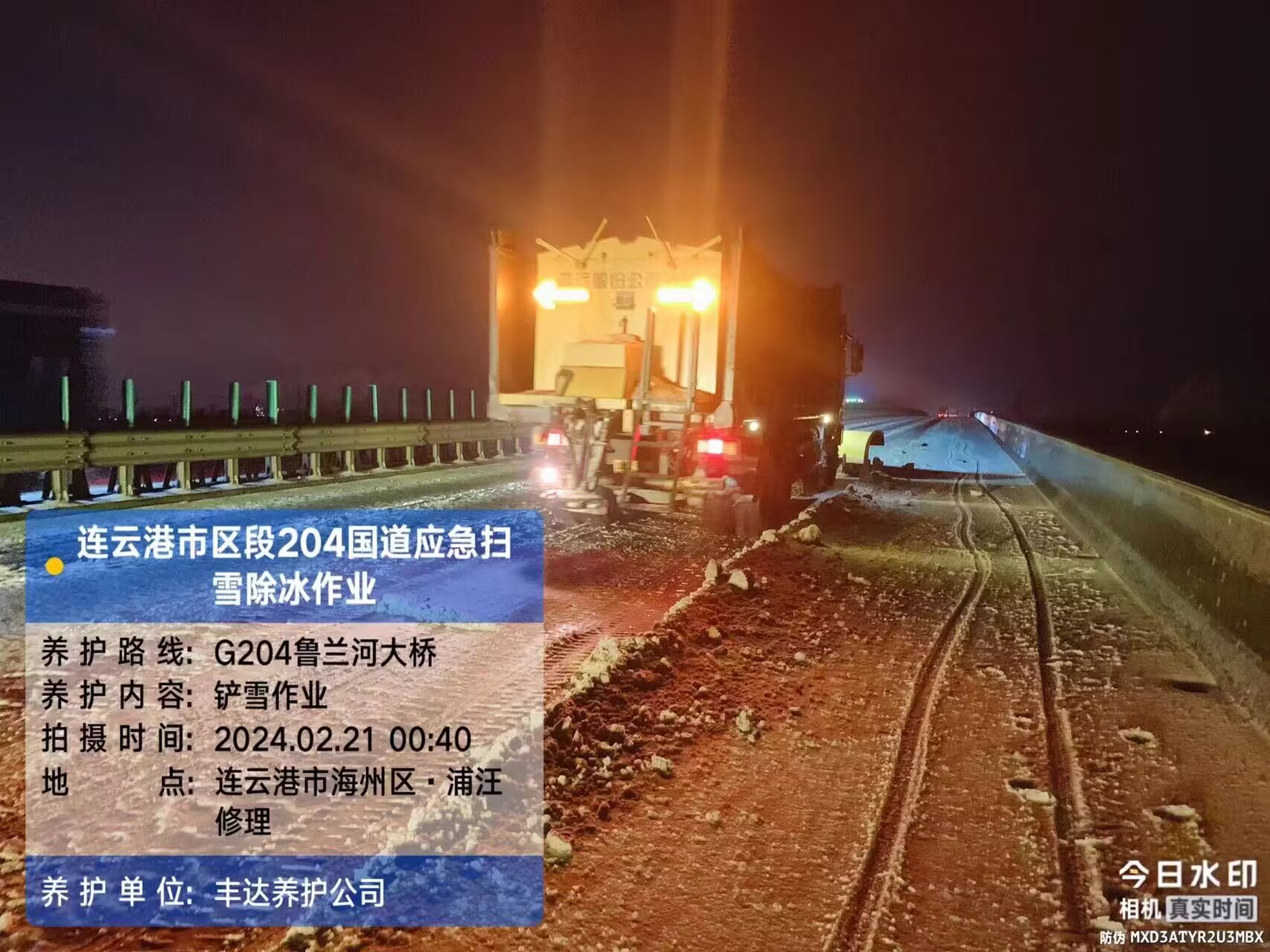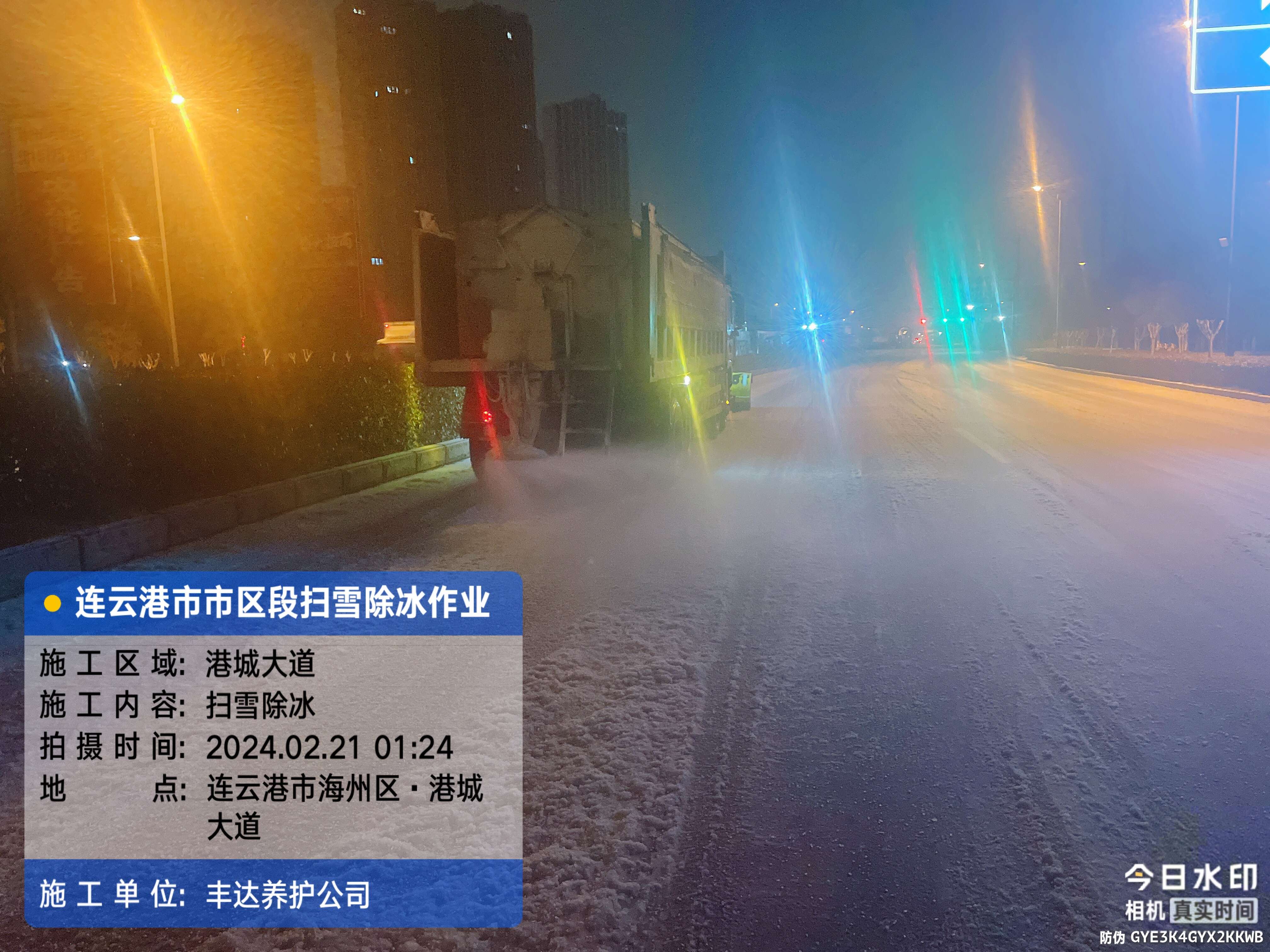 丰达公司迅速投入除冰雪战役,做好管养的国省干道、港城大道、连徐高速及宁连高速等重点路段应急备战工作,针对长陡大坡路段、桥梁、隧道出入口、背阴处等易积雪重点路段,提前布置防滑沙袋。20日晚,市区突降大雪,公司迅速出动橙色突击队及各重要值班值守人员昼夜奋战冰雪一线,并连夜组织除雪车、撒布一体机等车辆在公司管养的国省干线、高速公路、港城大道等路段进行扫雪除冰作业,不间断铲雪除冰,经过公司干部职工连夜奋战,保证了车辆道路畅通,守护群众出行安全。