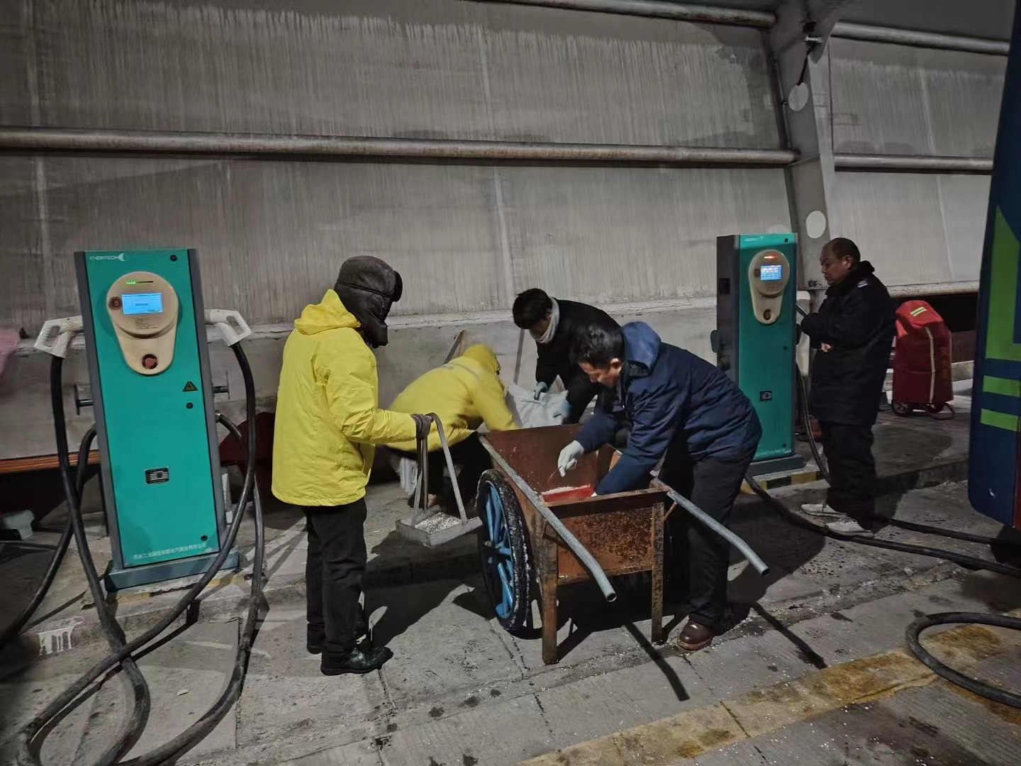 明茂公司在站内积极开展积雪清扫行动,以确保公交车的充电安全,及时清除充电站积雪,检查配电房、充电桩箱体、充电枪、充电桩、接地、消防设备等设施设备的情况,组织人员对充电站周边道路、室外台阶等处进行扫雪除冰,重点部位采取铺设麻袋、撒盐等防滑措施;充电站内,加强行车安全教育,严格站内车辆行驶及停放管理。低温雨雪冰冻天气期间,明茂公司将严格落实工作责任,落实24小时值班制度和领导带班制度,为广大市民的平安、便捷充电保驾护航。