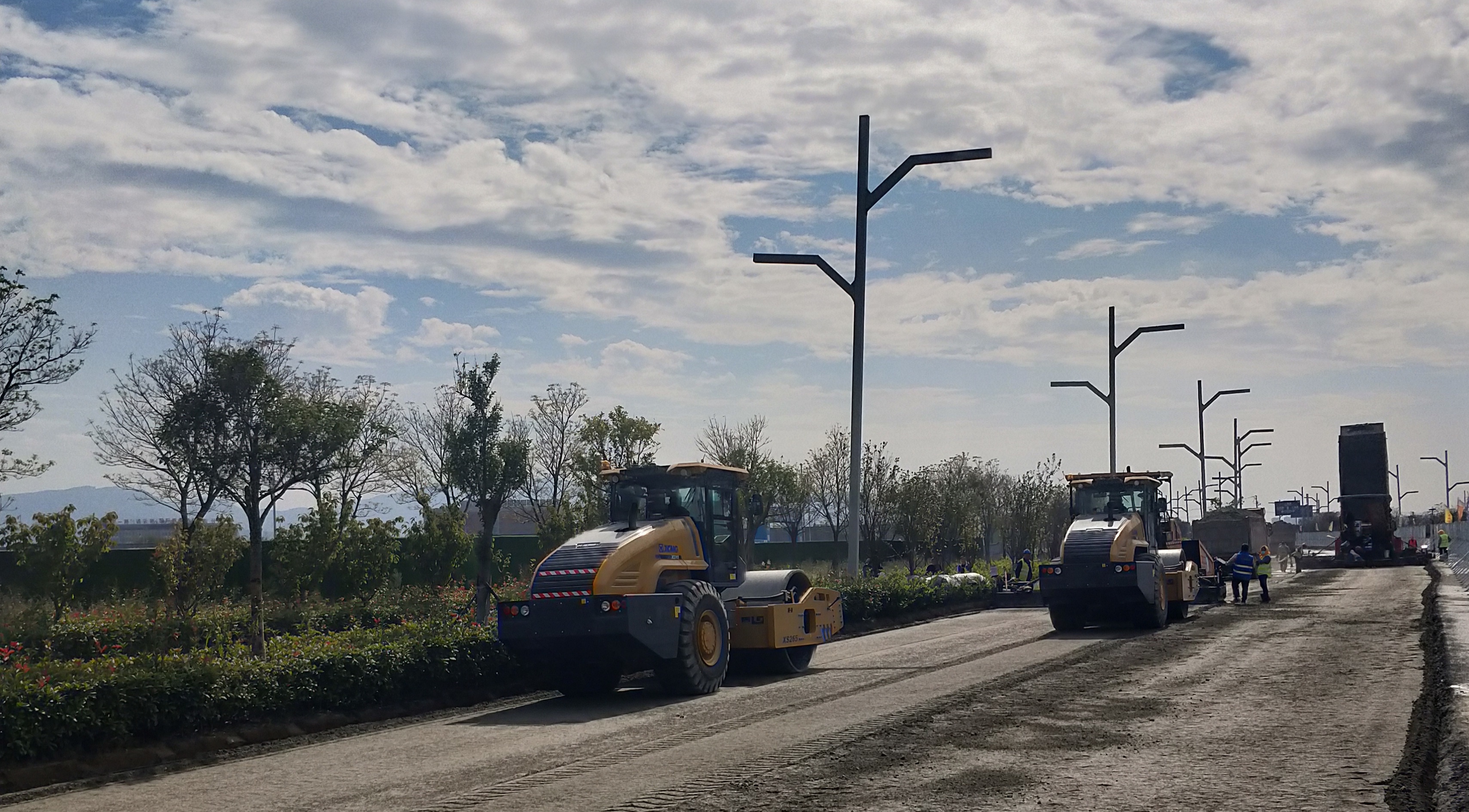 截止至目前,连云新城商务中心区道路改造提升工程水稳施工项目已完成水稳混合料约6万吨。
