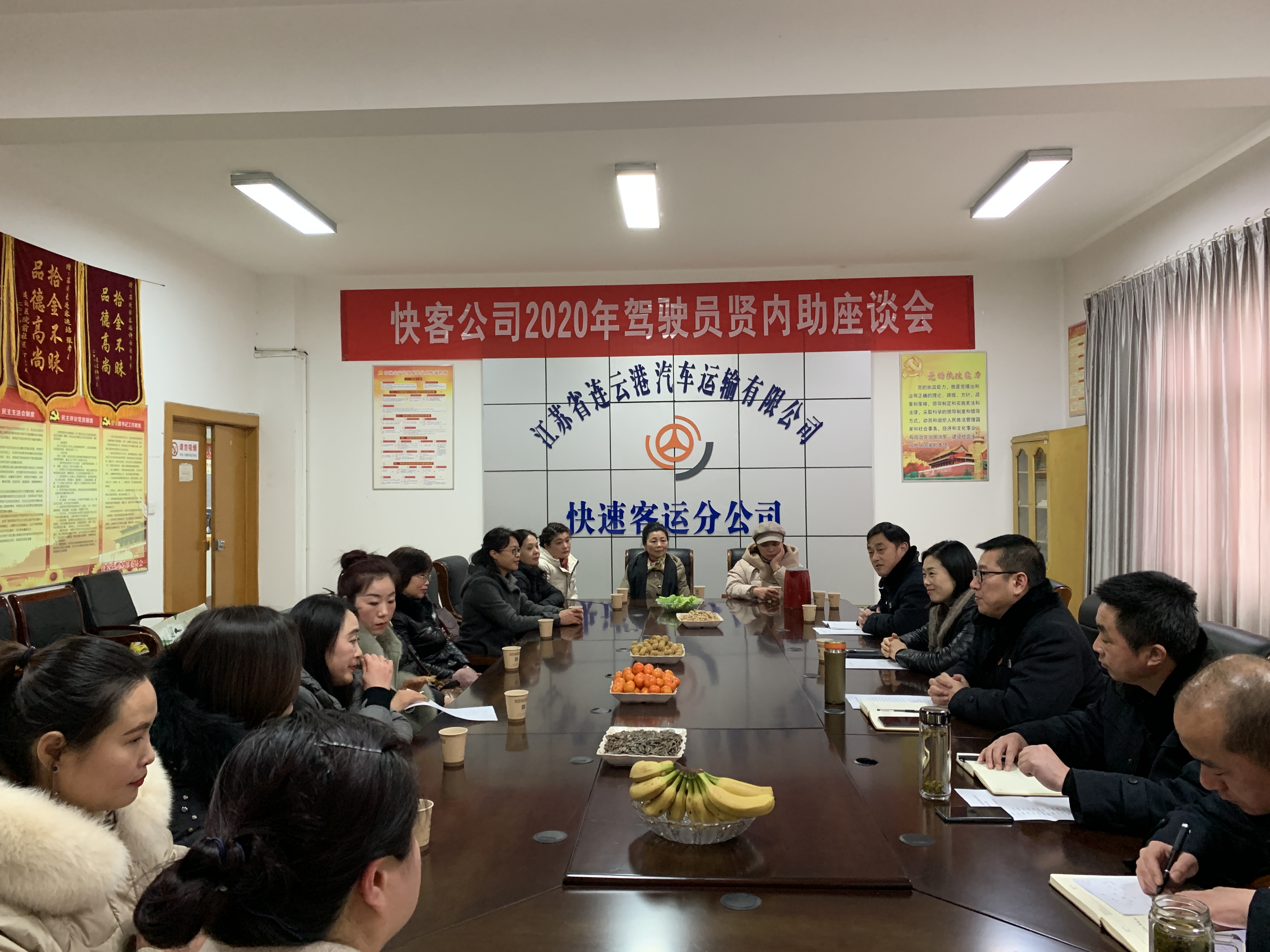 为进一步加强安全生产管理,了解掌握驾驶员动态,有效提升客运驾驶员的安全意识,1月17日下午,连汽快客公司召开了迎新春驾驶员贤内助座谈会。有限公司副总经理、工会主席叶星妍、快客公司经理董红波、领导班子成员、驾驶员家属参加了会议。