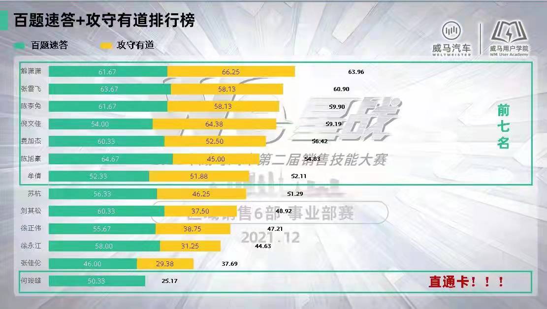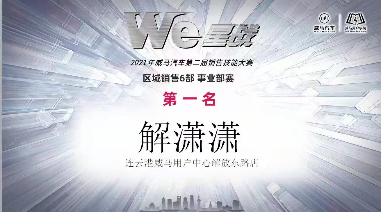 此次比赛从理论考试、知识抢答、情景模拟三大项进行比拼。情景模拟内容围绕需求分析、产品介绍、议价成交展开多维度挖掘参赛选手的实力与风采。考验的是选手扎实的理论知识功底以及服务中的应变能力。在比赛前期,解潇潇精心准备,全力备战,向着店里定下的保二争一的目标,在赛场上沉着冷静,全身心投入比赛。经历一天的比拼,历经重重的考验,明茂汽车销售公司服务大使解潇潇荣获“威马汽车服务大使技能比赛东部赛区第一名”。