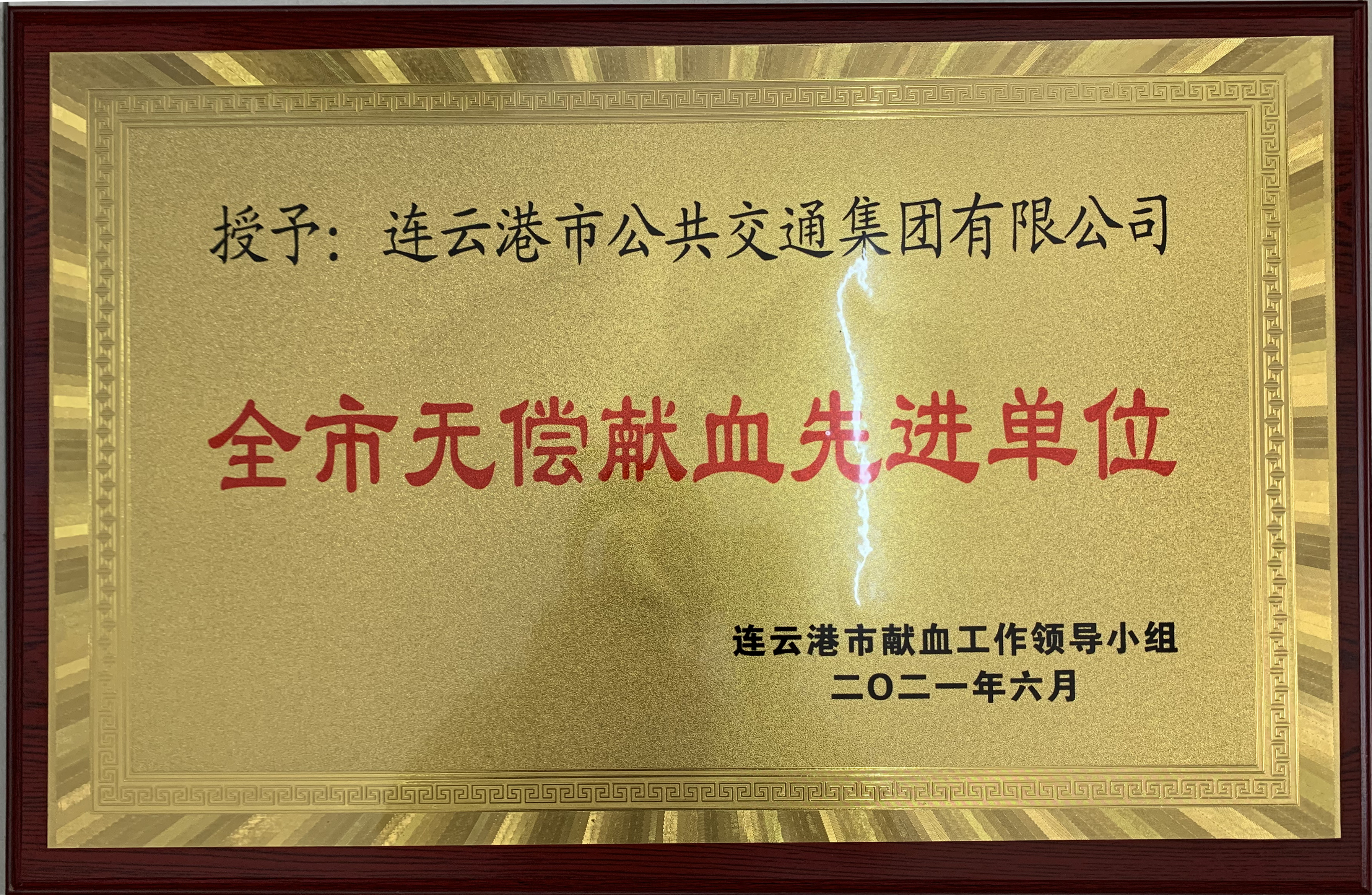 日前,连云港市献血领导小组授予连云港市公交乐玩app最新版下载,乐玩(中国)“全市无偿献血先进单位”荣誉称号。