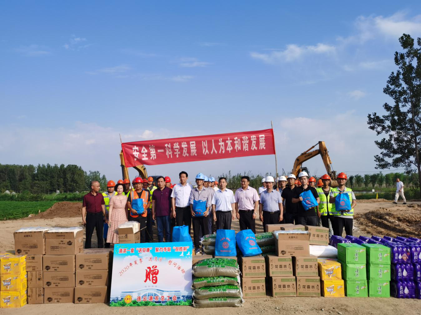 张明富一行为建设者们送来了凉茶饮品、绿豆、毛巾、花露水等消暑必备物品,向他们表达了亲切的关心与问候,赞扬了建设者们在高温下坚守工程建设一线的敬业精神及对生态修复建设做出的积极贡献,并反复叮嘱大家要注意科学防暑、适时休息。