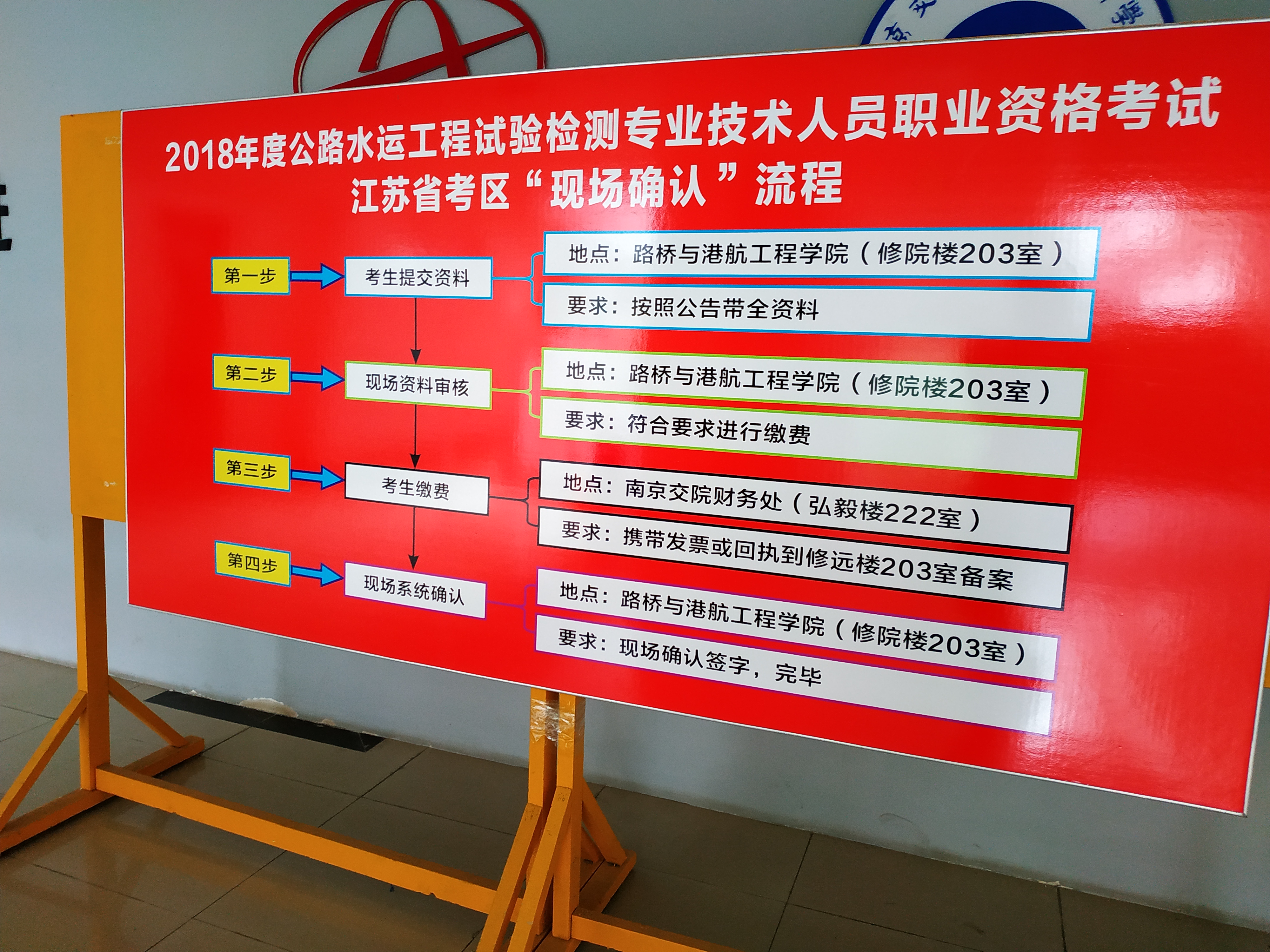 2018年度公路水运工程试验检测专业技术人员职业资格考试江苏考区将于2018年10月13日至14日在南京交通技术学院举行。