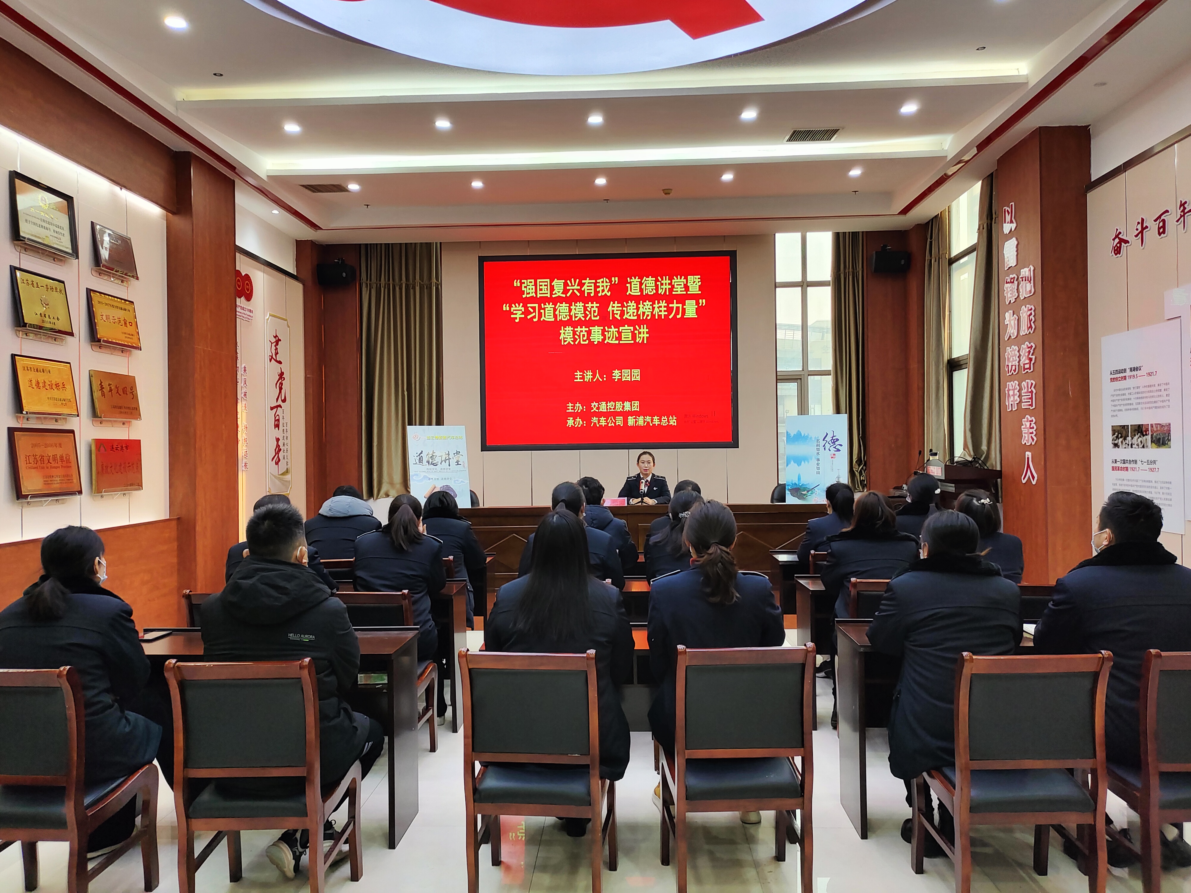为认真落实“强国复兴有我”道德讲堂暨“学习道德模范 传递榜样力量”主题宣传教育活动,12月7日下午,由交通控股乐玩app最新版下载,乐玩(中国)主办,汽车公司、新浦汽车总站承办的道德模范进讲堂活动在新浦汽车总站二楼党员会议室开讲。活动邀请市五一劳动奖章获得者、第六代“雷锋车”手李园园宣讲,公司领导班子及干部职工代表30余人参加活动。
